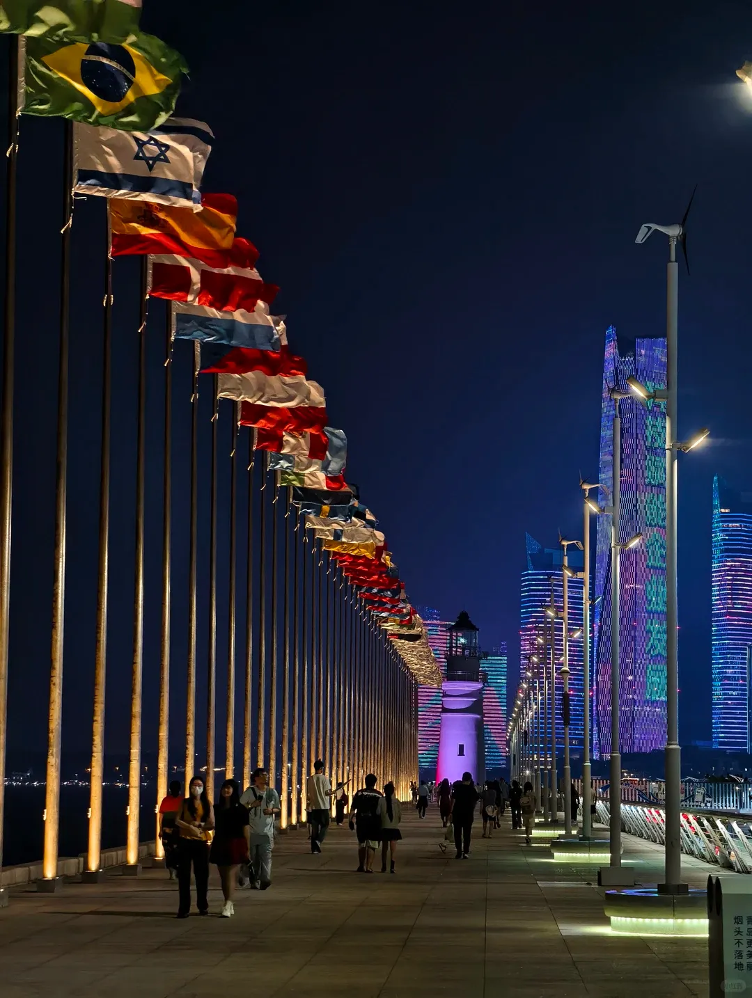 ▻ 推荐环线(约6公里):五四广场→沿海滨步行道→奥帆中心→绕行情人坝→经澳门路返回▻ 全程为专用步行道,夜间照明充足,但情人坝末端光线较暗,建议携带轻便头灯或反光手环▻ 最佳时段为19:30-21:30,能欣赏夜景▻ 冬季海风凛冽,建议内层排汗外层防风;夏季则需注意防蚊▻ 途中补给点:奥帆中心商业区有便利店,情人坝入口处设自动贩售机▻ 可在地标处设置间歇训练节点(如:灯塔折返段加速,雕塑广场段恢复)▻ 逢周五、六晚奥帆中心常有灯光秀,可规划在20:00左右抵达最佳观景点