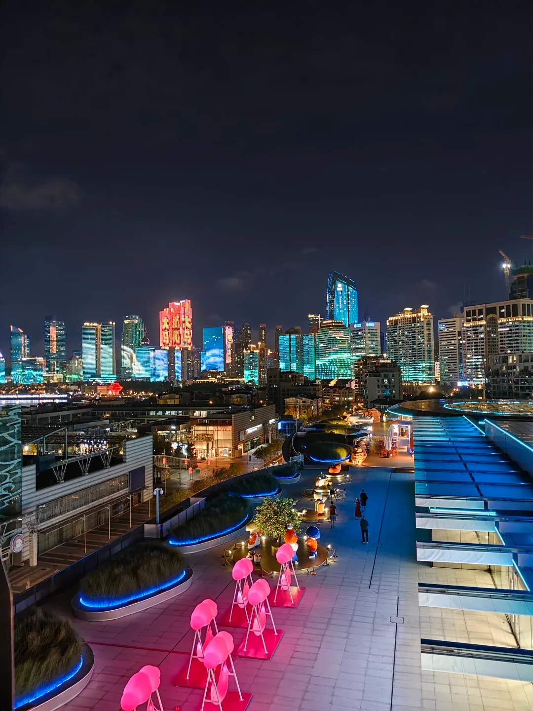 晚上七点半后出发最佳,此时“五月的风”雕塑已被灯光染成暗红色,像一枚燃烧的星体悬浮在夜色中。