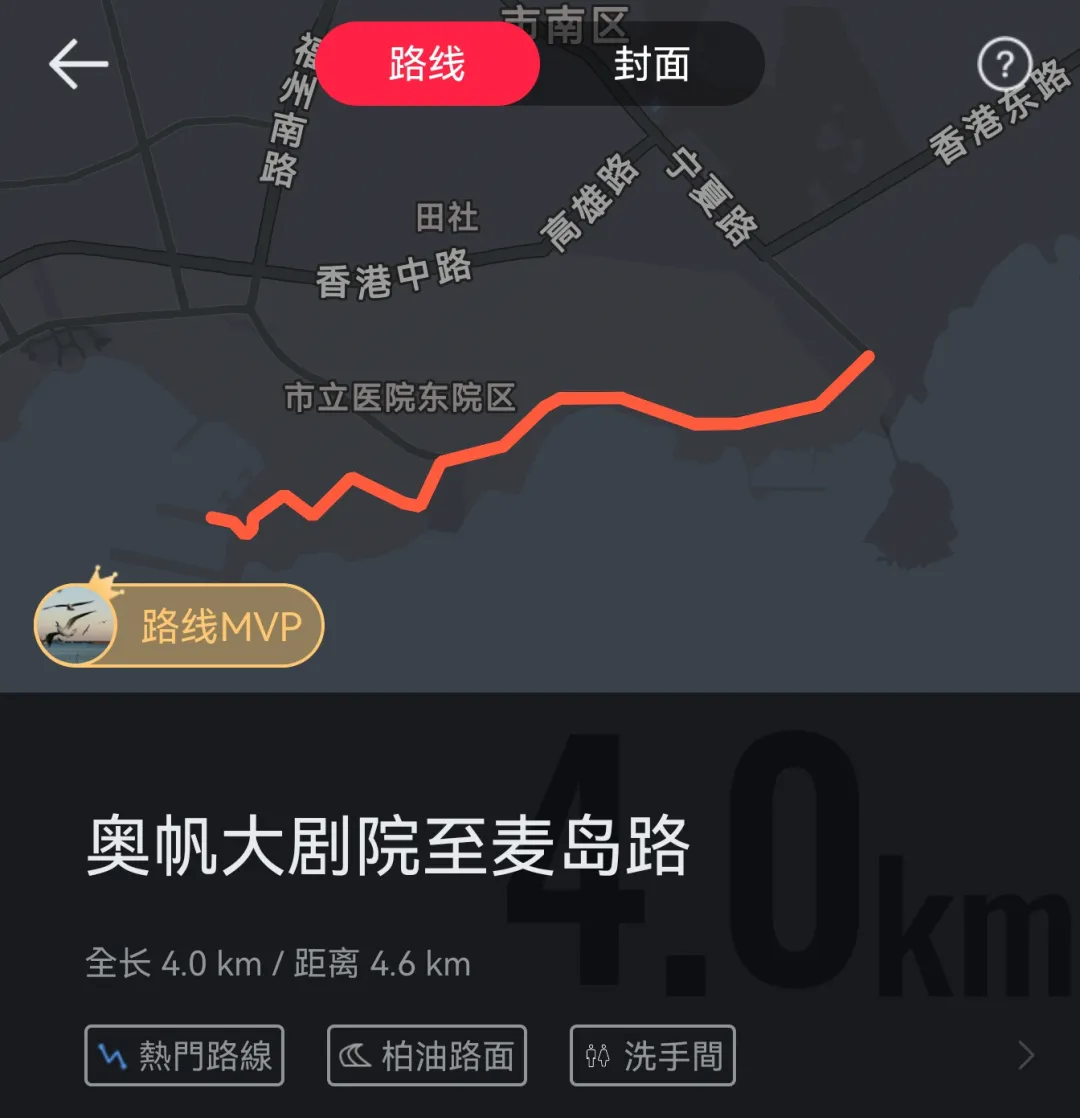 ▻ 东海中路段全程为硬化路面,建议选择回弹较好的跑鞋;麦岛环线路段多有缓坡与观景平台,需注意脚下起伏▻ 晨跑建议6:00-7:30之间完成东海中路段,以避开早高峰车流及尾气▻ 途中补给点:东海中路中段有加油站便利店,麦岛入口处设有自动贩售机▻ 若遇较强东南风,东海中路段逆风明显,可适当调整配速预期▻ 周末晨间麦岛游客增多,建议将环岛段安排在7:00前完成▻ 可设计为渐进式训练:城市平路节奏跑(0-4km)→桥段爬坡耐力(4-5.5km)→环岛混合地形适应跑(5.5-8.5km)