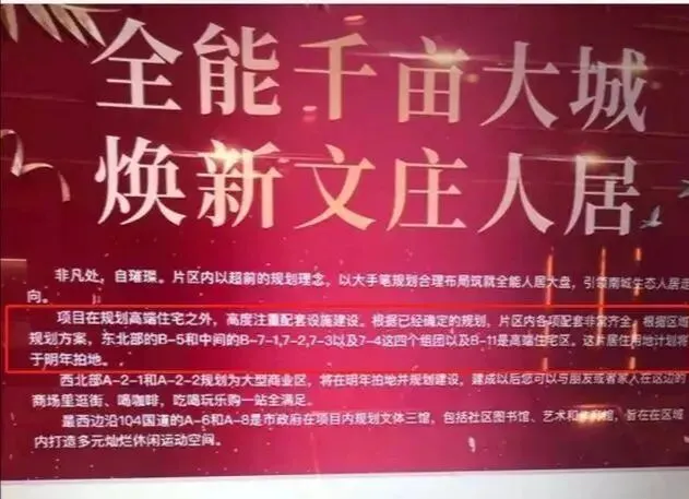 该公司以微信公众号、微信公众号程序链接、售楼处设置的沙盘、网络宣传视频、印刷品广告等形式,宣传片区规划建设三级甲等医院。但相关材料仅显示相应地块的规划用途为医院用地,但未说明配建“三甲医院”的具体依据和出处。