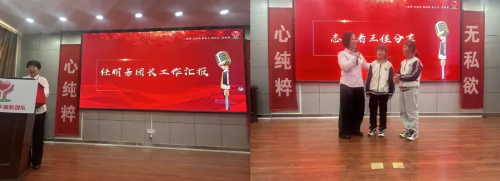 志愿者王佳老师的分享,则让我们见证了两个孩子的蜕变与成长。曾经自卑自闭的怡佳姐妹俩,在王佳老师的悉心陪伴与引导下,如今已然蜕变得活泼开朗。当王佳老师邀请姐妹俩上台时,她们落落大方、自信从容,与初见时的模样判若两人。不仅如此,姐妹俩家里的环境也从原先的脏乱差,变得窗明几净、整洁有序。王佳老师虽不能时常陪伴在孩子身边,却始终用电话、视频传递着关心与鼓励,一点点走进孩子的心里,成为她们最信赖的依靠。姐妹俩更是在现场许下承诺,期末要努力考到 60 分,争取拿到属于自己的奖励。