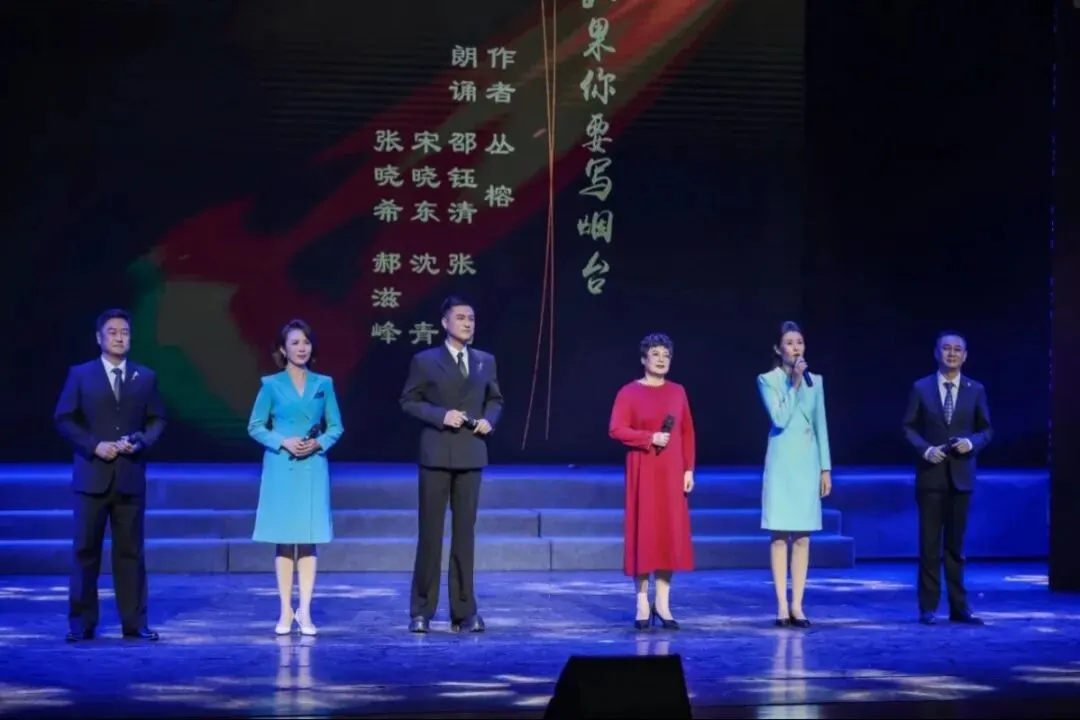 随后,“四季·烟台——声音里的山海十年”诗文朗诵会接续上演。朗诵会以“春·生”“夏·长”“秋·韵”“冬·藏”为叙事主线,深度融合烟台山海风光、民俗风情与城市人文脉络,将烟台朗协十年成长轨迹与港城文化传承紧密相连。