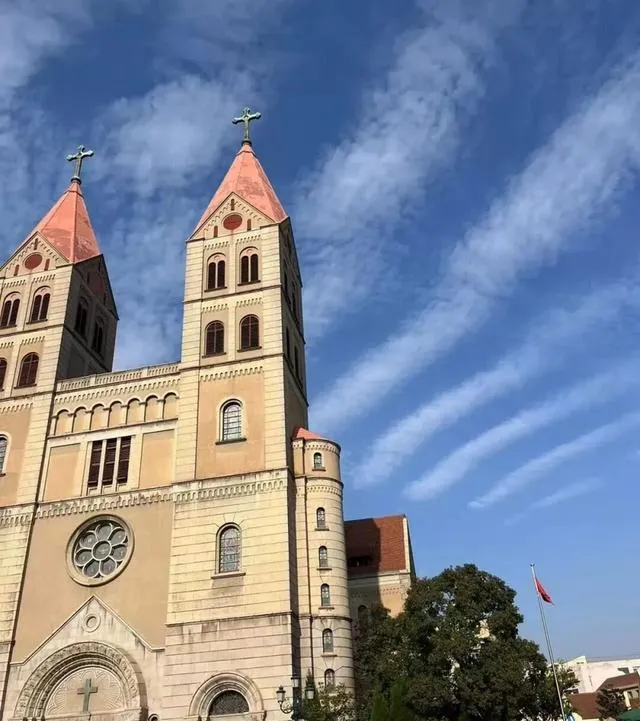 走在中山路,石板路边的老建筑像一本本摊开的旧账本。路口的天主教堂,1934年竣工,哥特式尖顶在夕阳下投下一片橘红。院墙上画着海浪和小船,孩子们追着鸽子跑,叽叽喳喳。旁边一位卖糖球的阿姨吆喝:“冰糖葫芦嘞,甜到心里头!”几个游客围过去,阿姨用本地话指点:“这串大的,老好吃了,别光拍照,尝尝味儿。”