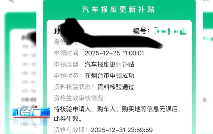 更让孙先生崩溃的是,提车前他已经成功抢到了烟台市的车辆报废国补资格,而这个资格绑定的,正是眼前这辆“货不对版”的新车。“一换车,国补就没了,我之前的车也白报废了!”