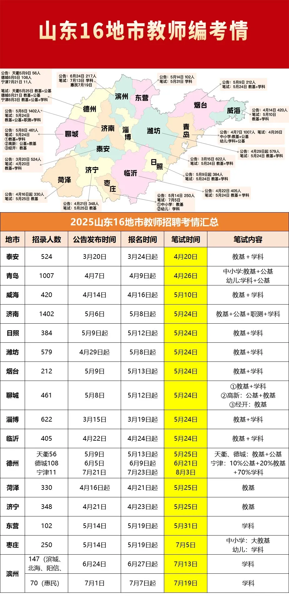>济南、青岛、潍坊、淄博、临沂、烟台、德州、威海等教师编公告发布!