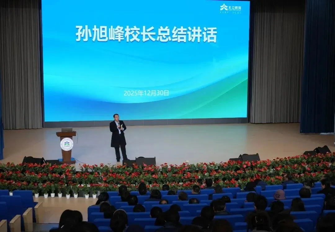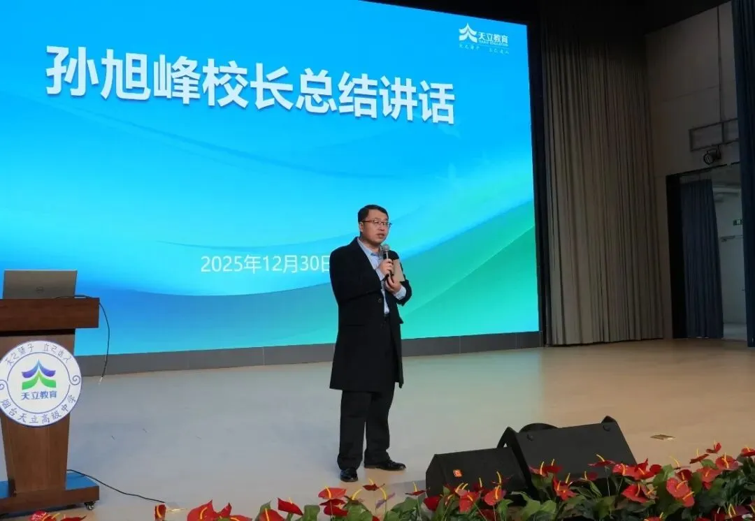 冬阳煦暖,学期末的脚步渐近。2025年12月30日上午,烟台天立高级中学全体教职工齐聚学校报告厅,召开12月全体教职工大会。会议聚焦校园舆情管理、教师考核激励与学校重点工作部署,为学校高质量发展蓄势赋能。