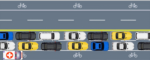 急救车辆应在中间车道通行,社会车辆应依次向两侧行驶避让。