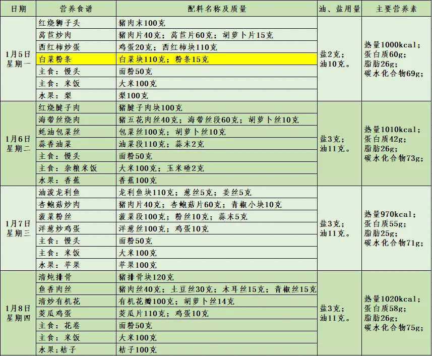 >青岛市北体育学校2025-2026学年度第一学期第十九周学生营养午餐带量食谱(1月5日-1月9日)