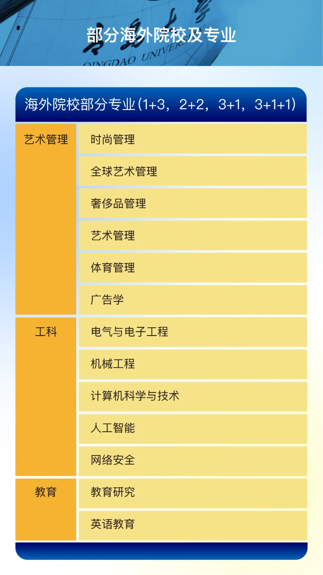 >青岛大学3+1/2+2/3+1+1/1+3国际本科招生简章