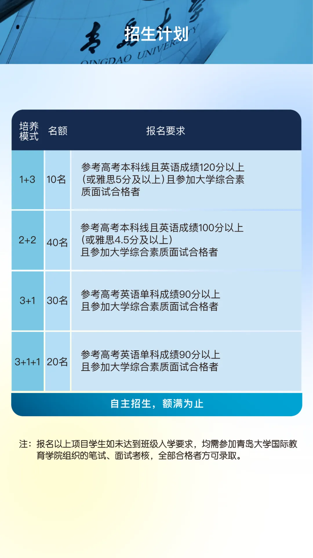 青岛大学3+1/2+2/3+1+1/1+3国际本科招生简章