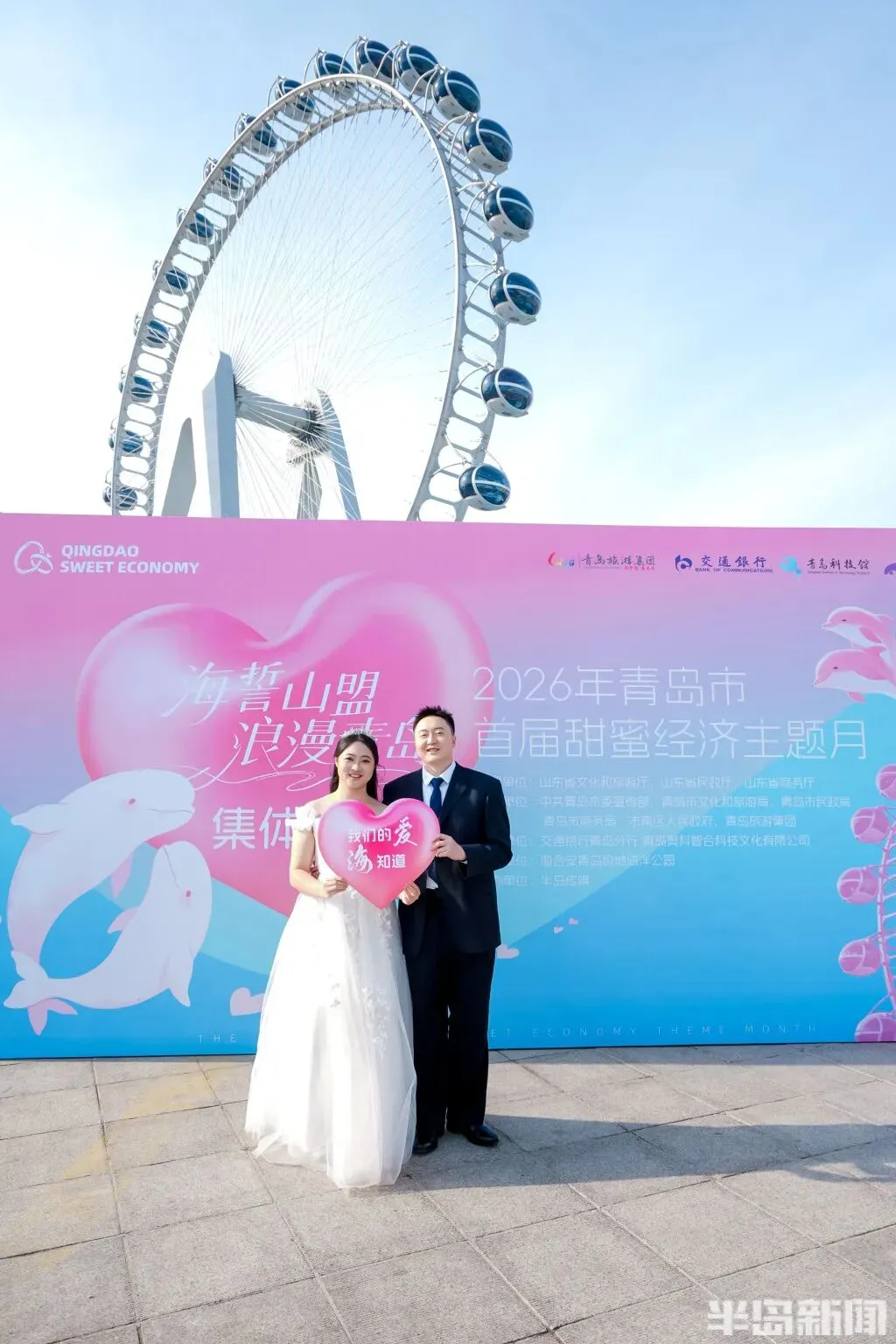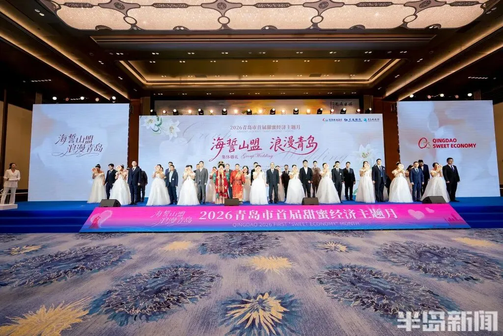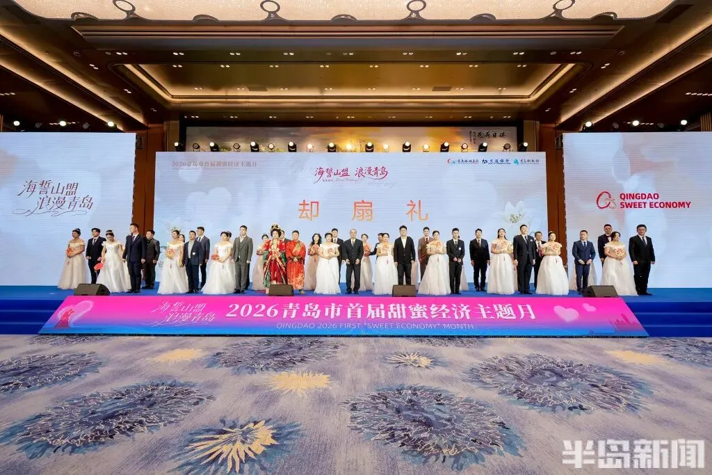 本次集体婚礼是2026青岛市首届甜蜜经济主题月的核心活动之一,旨在弘扬婚俗新风,倡导简约婚礼。