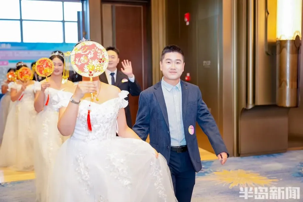 9时许,婚礼仪式在青岛国际会议中心尚和厅正式拉开帷幕。现场装饰打造出温馨浪漫的婚典场景,空气中弥漫着幸福的气息。步入婚姻50载的金婚夫妇代表率先踏上红毯!他们用数十年的相守,诠释了“执子之手,与子偕老”的真谛。数十对新人身着礼服与婚纱,手挽手步入神圣的殿堂,寓意着美好爱情的代际传承与永恒延续。在亲友与市民的祝福中,他们许下终身承诺,开启幸福人生新篇章。