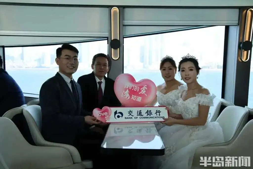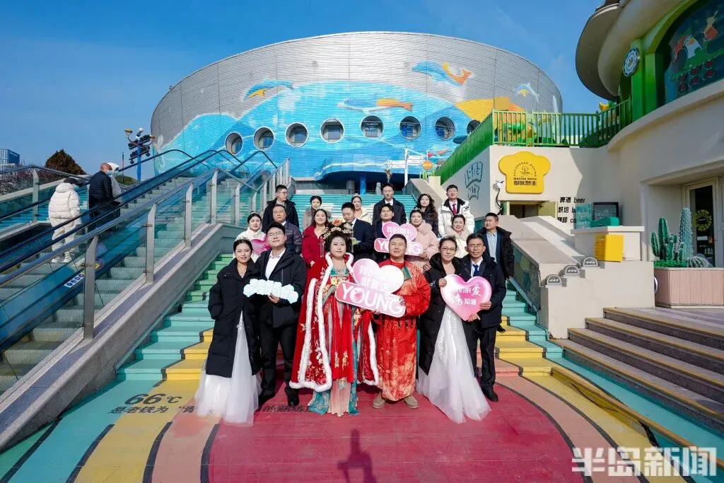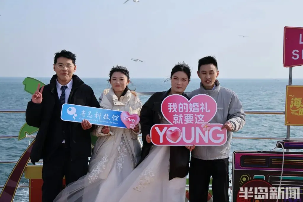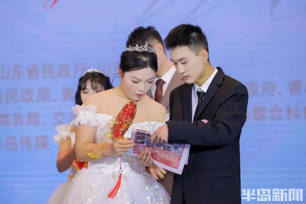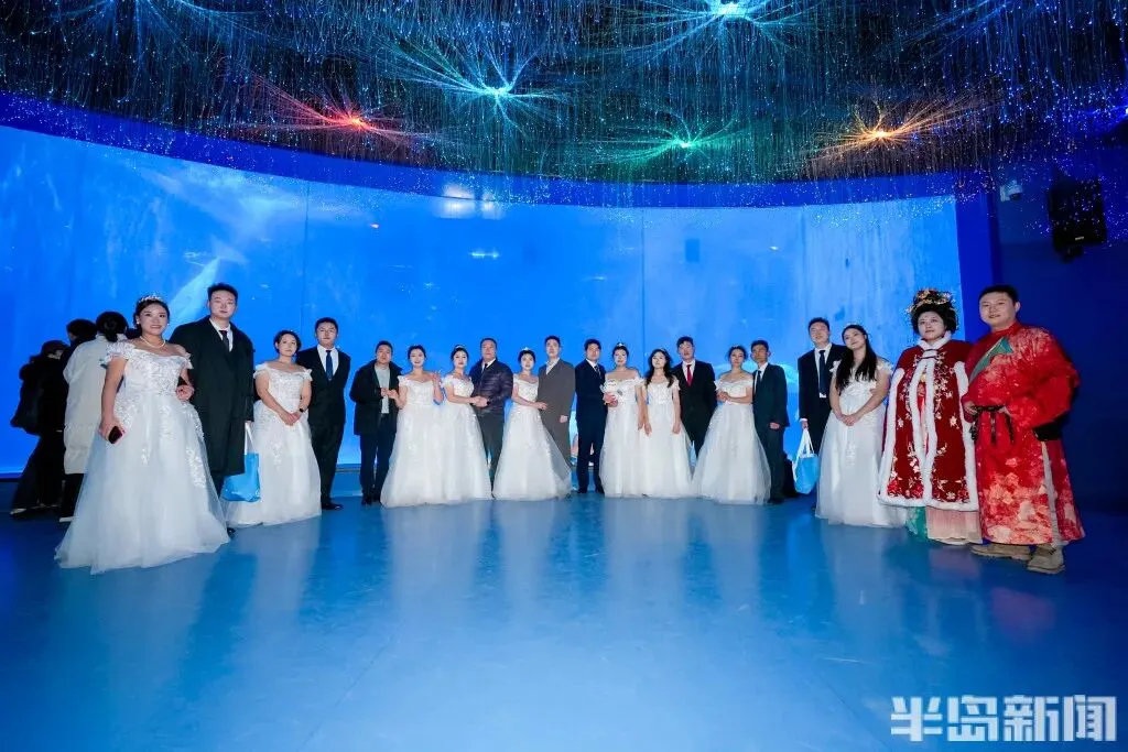 隆重而富有意义的婚礼仪式让新人们非常感动。新人薛俊奇和王美霞告诉记者,他们在2025年底在青岛西海岸新区刚刚领证,当时听民政局的工作人员说青岛有这样一场集体婚礼,他们就很想参加,之前他们在家也举办了一个小型婚礼,而参加这次盛大的集体婚礼,也弥补了很多的遗憾。新娘王美霞说:“今天的婚礼仪式让我觉得非常感动,尤其是却扇礼、合卺礼、宣誓等这些环节,我们之前的婚礼上都是没有的,而且在青岛的地标建筑留下了这么多美丽的合影,在大海和海底动物的见证下留下了甜蜜的回忆,这场婚礼让我觉得非常有纪念意义。”