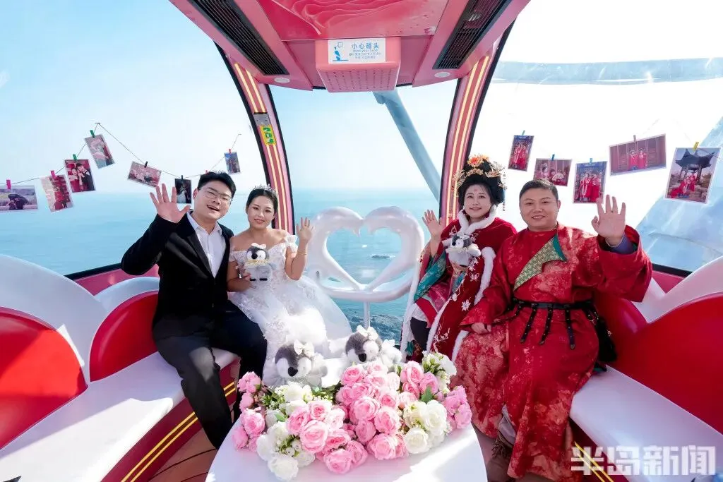 登上旋转一圈恰好是13分14秒的“极地之光·青岛海上摩天轮”,把新人们的爱情拉到云端之上,让空中的告白护佑新人的爱情天长地久。