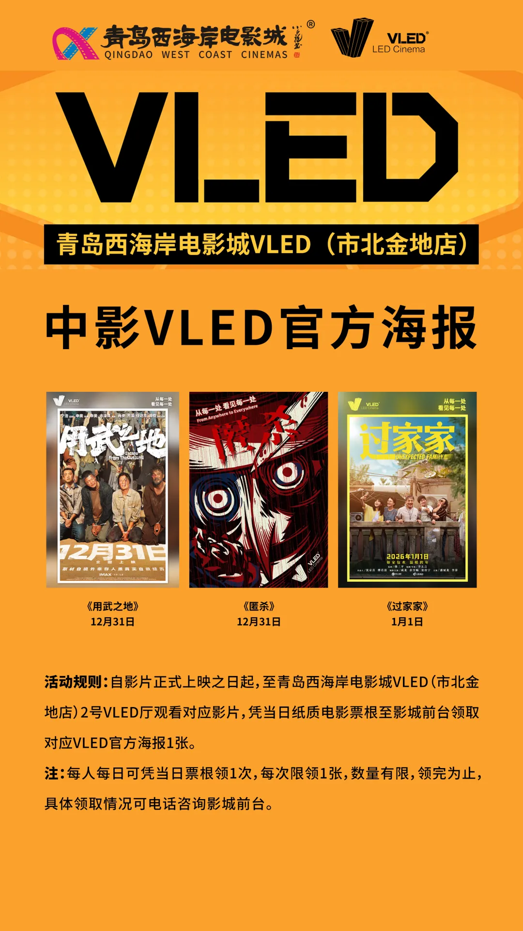 ♥市北金地店《用武之地》《匿杀》《过家家》中影VLED官方海报领取♥影迷团 | 家佳源店、市北金地店《时空奇旅》活动场招募