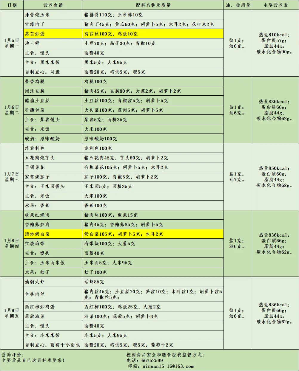 青岛市崂山区书院学校【美食篇】每周食谱公示(2026.1.4—2026.1.9)