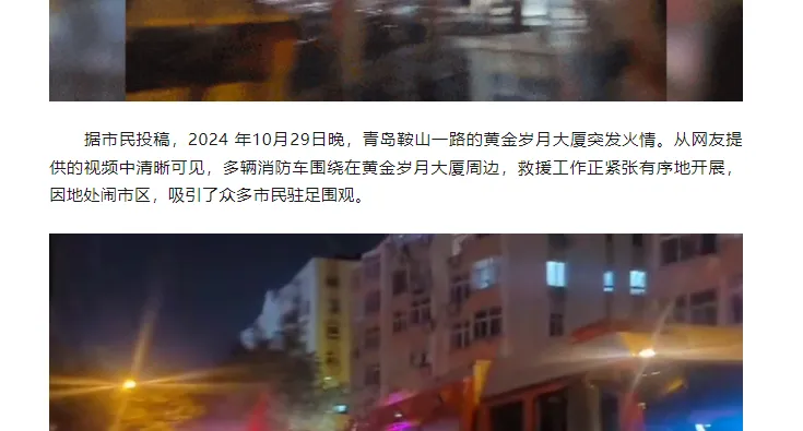 2024年10月29日晚,记鲁曾发布文章称黄金岁月大厦突发火情,多辆消防车围绕在黄金岁月大厦周边。