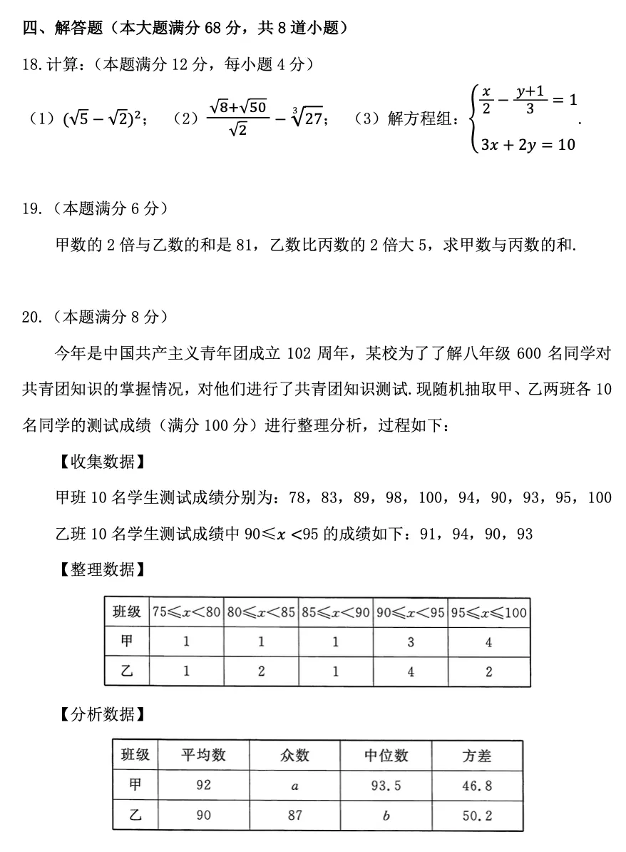 >青岛市市南区八年级2024-2025学年第一学期期末数学试题