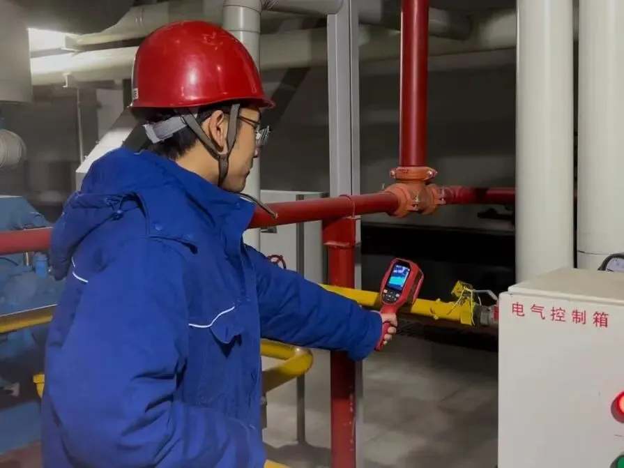 锅炉车间党员骨干、团青带头冲锋在前,增加对锅炉本体、管道阀门、伴热系统、压缩空气系统等关键部位的特巡频次,重点排查防冻薄弱环节,利用测温枪、热像仪等工具进行诊断,及时发现并处理潜在隐患,保障设备健康运行,为元旦期间的安全稳定供热保驾护航。