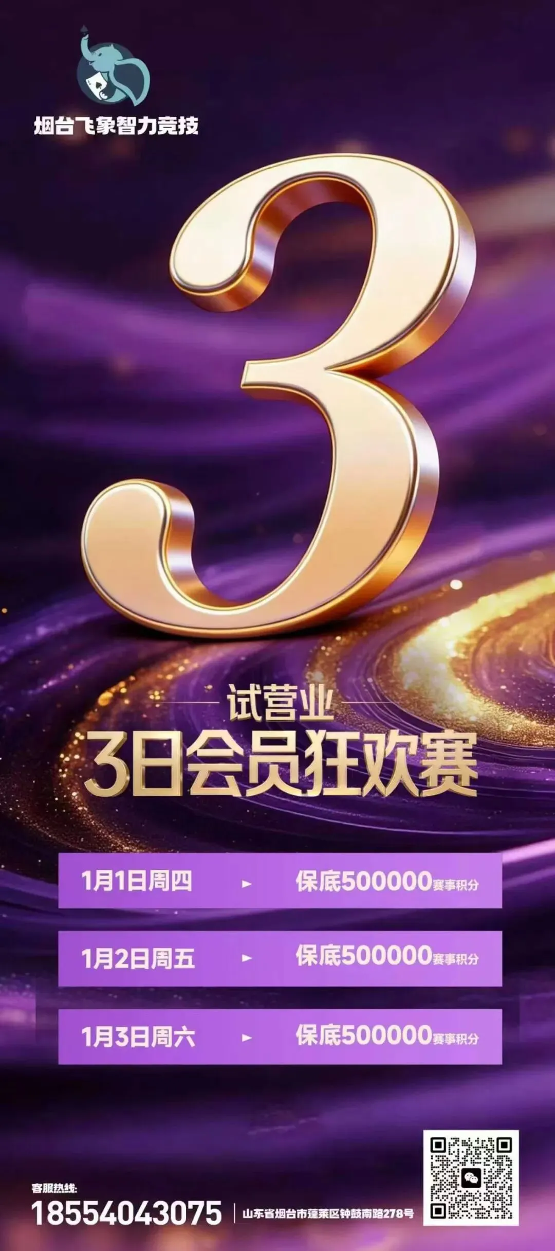 当试营业遇上元旦假期,飞象智力竞技直接把 “宠粉” 打在公屏上 —— 1月1日-3日,3日会员狂欢赛火力全开,每天保底 500,000 赛事积分,保底奖励前9,破保追加,iPhone、华为手机、iPad 豪华大奖等你来拿!