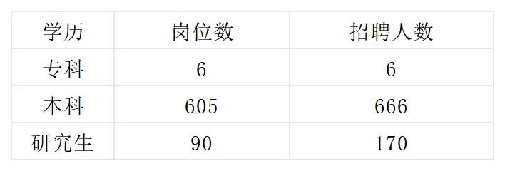 本科岗605个,招聘666人。