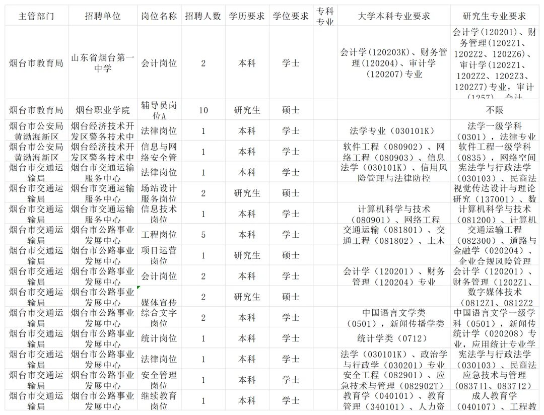 烟台事业单位专科及以上,40以下可报。学历主要以本科为主。以2025年为例:
