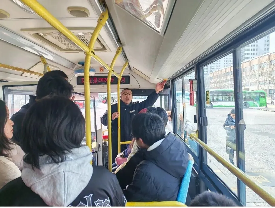 1月1日上午,82路“把爱带回家”携手烟台论坛、易鸣升学共同举办“青春同行 筑梦公交”主题活动。活动当天,烟台一中、烟台二中等学校的数百名学生齐聚芝罘区公司龙海场站,沉浸式了解公交车全流程运转机制,系统学习安全乘车知识,开启了一场别开生面的社会实践之旅。