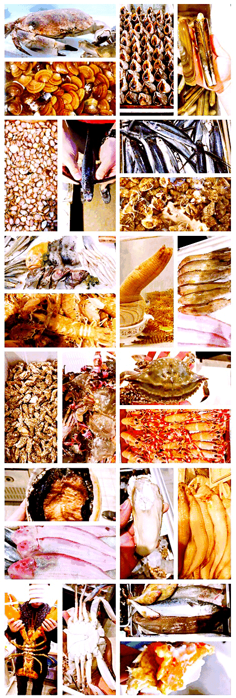 蛏子、扇贝、巴蛸、鲍鱼、海参……