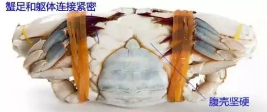⑤看蟹足。蟹足和躯体连接紧密,提起蟹体时蟹足坚硬最肥满;