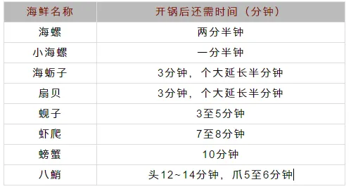 蒸煮海鲜时间表