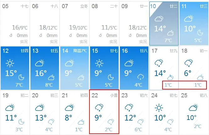 预计下个周末气温将逼近0℃!
