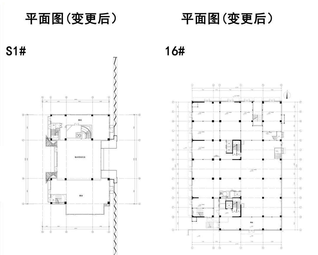 1.物业用房规划调整:S1#楼首层部分商铺调整为物业用房,首层物业用房建筑面积由218.89㎡调整为359.85㎡,16#楼首层物业用房建筑面积101.32㎡调整为商业,合计物业用房建筑面积增加39.64㎡,商业建筑面积减少39.64㎡,公共配套建筑面积增加39.64㎡。