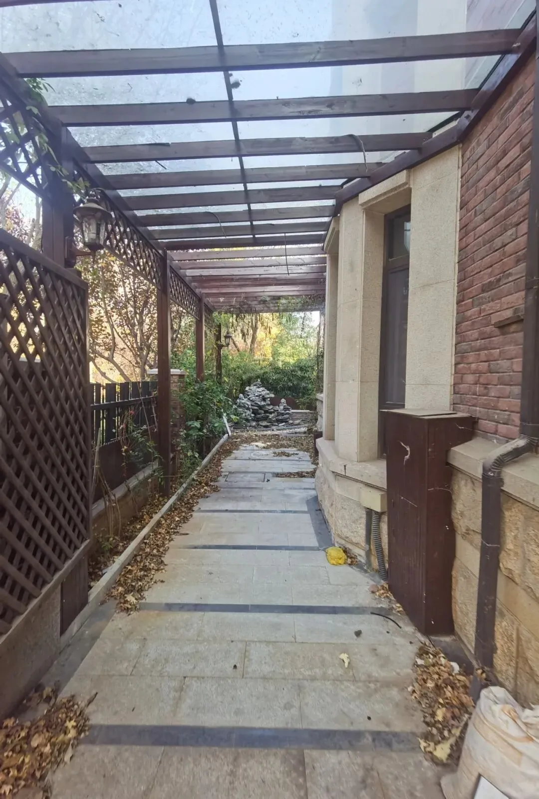 附属物情况:室内附属物共计19项,包含水池、假山、石榴树、柿子树、木制凉亭、玻璃隔墙、木制走廊、过滤设备、软水机等。