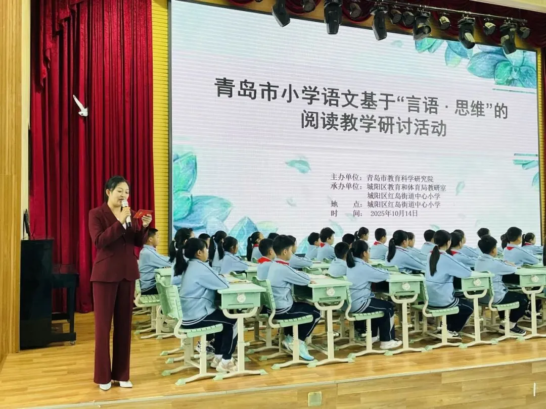 秋意渐浓,学思正暖。为进一步深化单元整体教学研究,探寻语言表达与思维发展在语文课堂中的美妙共鸣,10月14日上午,青岛市小学语文基于“思维·言语”的阅读教学研讨活动,在城阳区红岛街道中心小学如期举行。青岛市各市区教研员,各小学中高年级语文骨干教师参加了本次研讨活动。