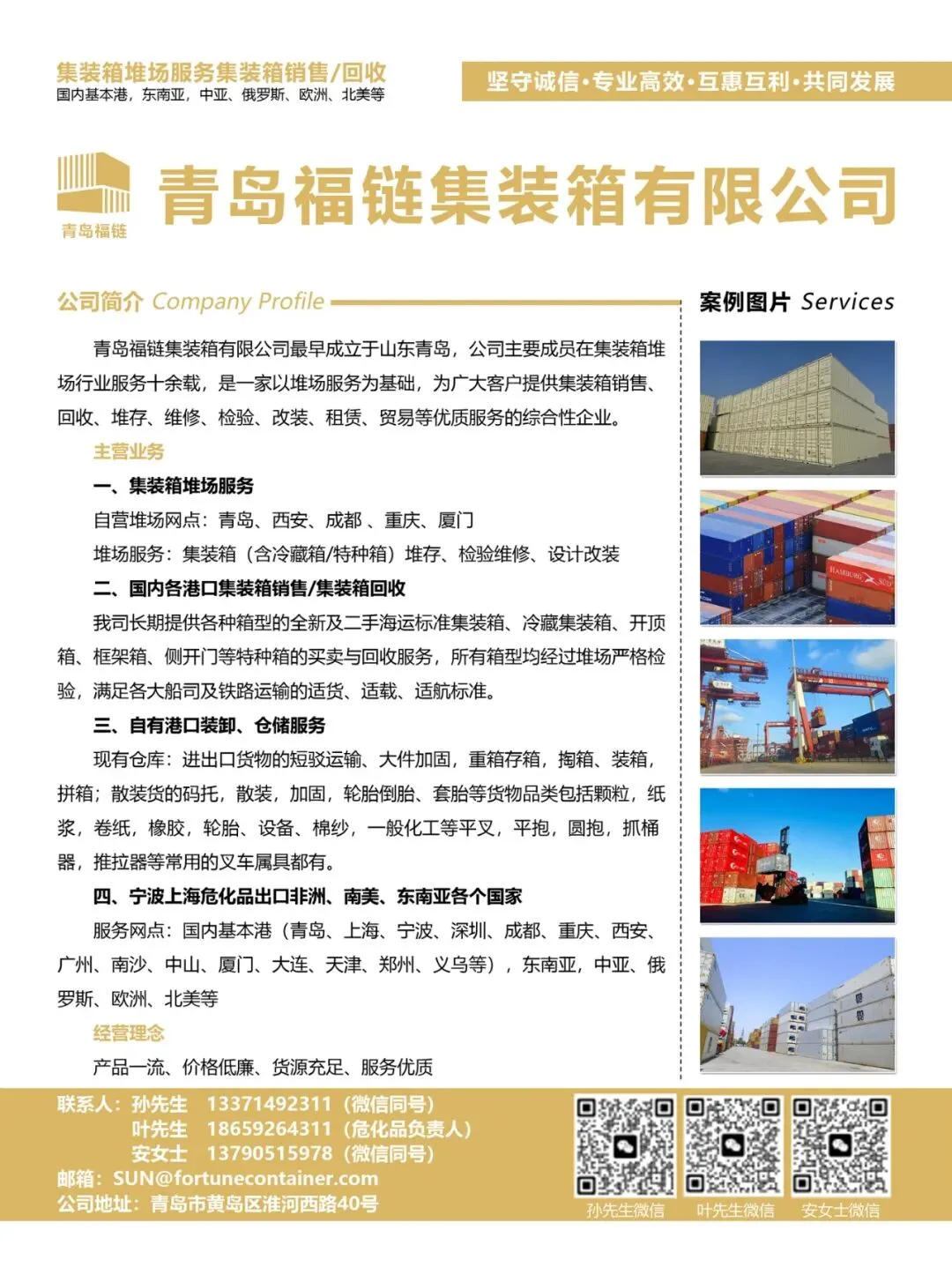 自营堆场网点:青岛、西安、成都 、重庆、厦门