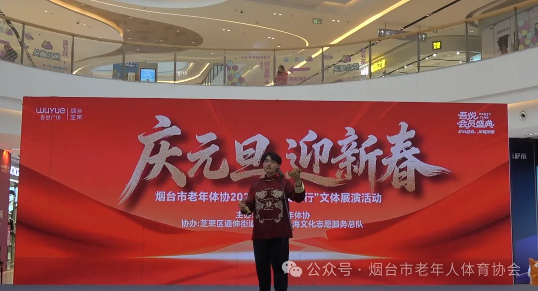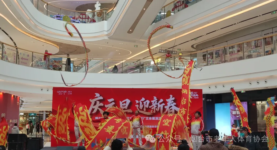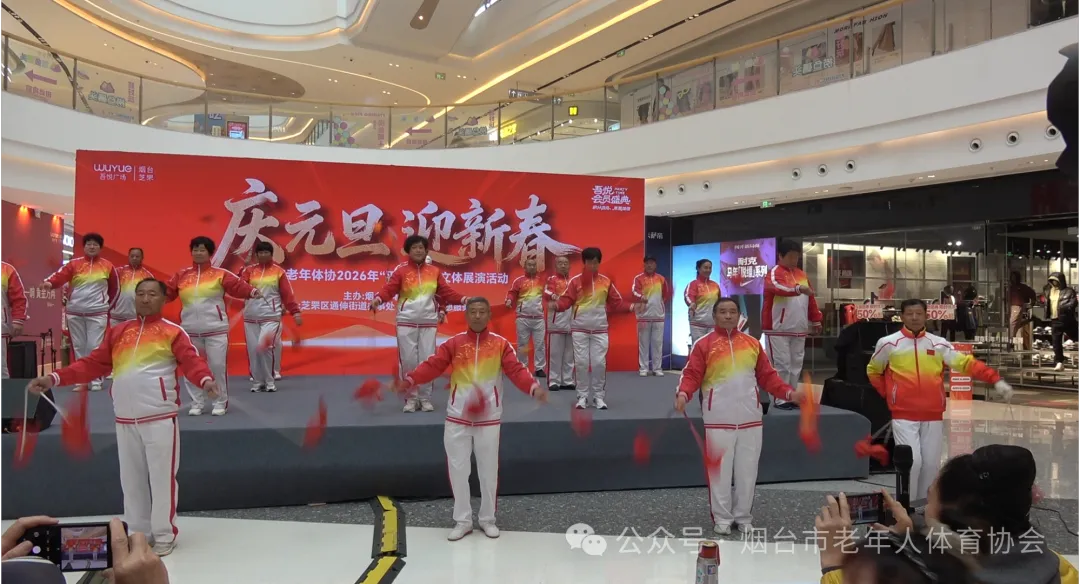 岁序更替,华章日新。2025年12月31日上午,烟台芝罘吾悦广场一楼东大厅呈现一片欢乐的海洋。烟台市老体协“平安银行”2026年“庆元旦、迎新春”文体展演活动在这里举办。来自市老体协空竹专委会、健身气功专委会、管乐团和通伸街道办事处、山海文化志愿服务大队、阳光童趣艺术团150余名文体爱好者齐聚一堂,共同辞旧迎新,以歌声、鼓乐、舞蹈、曲艺和舞龙、流星球等多种展现形式,迎接我国第十五个五年计划2026首年的到来。