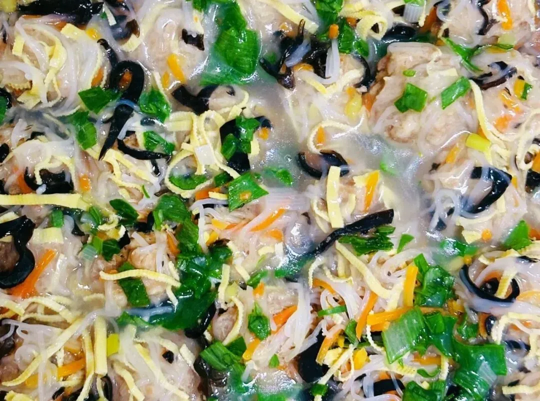 金银米饭、五彩绣球丸子、地三鲜、蒜蓉双花、暖冬滋补羊肉汤