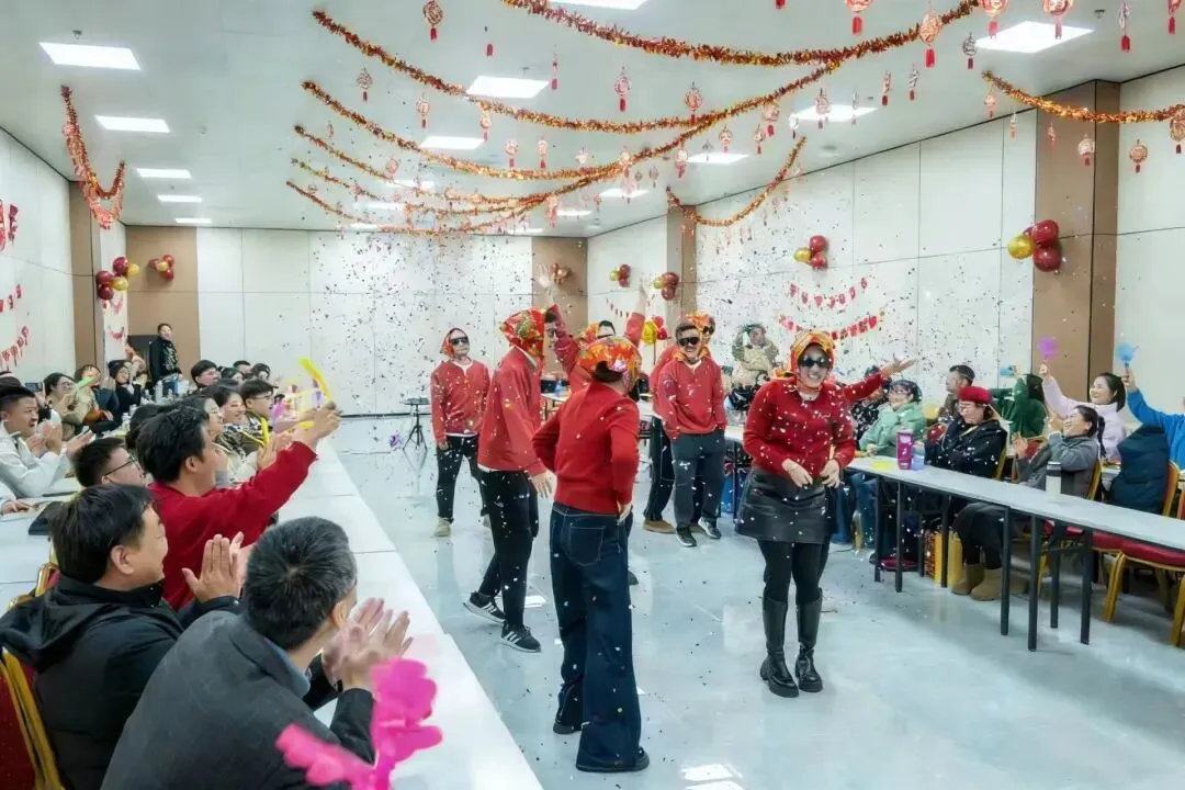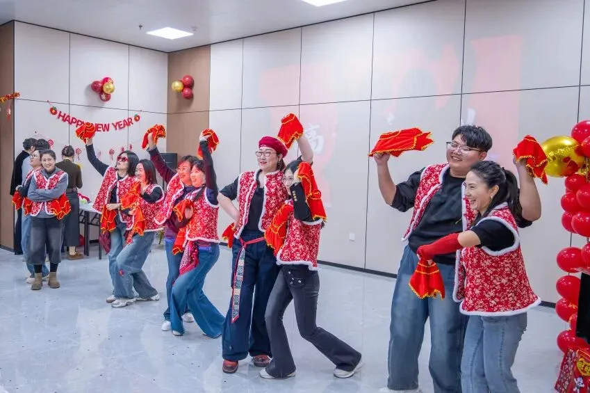 来自学生处(团委)的歌曲串烧节目,将浓浓的年味儿与青春气息洒满全场。《欢乐中国年》《恭喜发财》《桃花朵朵开》,喜庆欢快的旋律勾起全场观众的集体回应,大家纷纷跟唱,台上台下汇成一片欢乐的海洋。