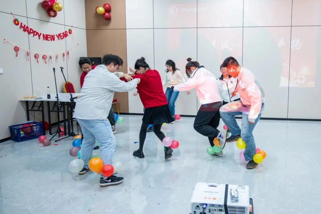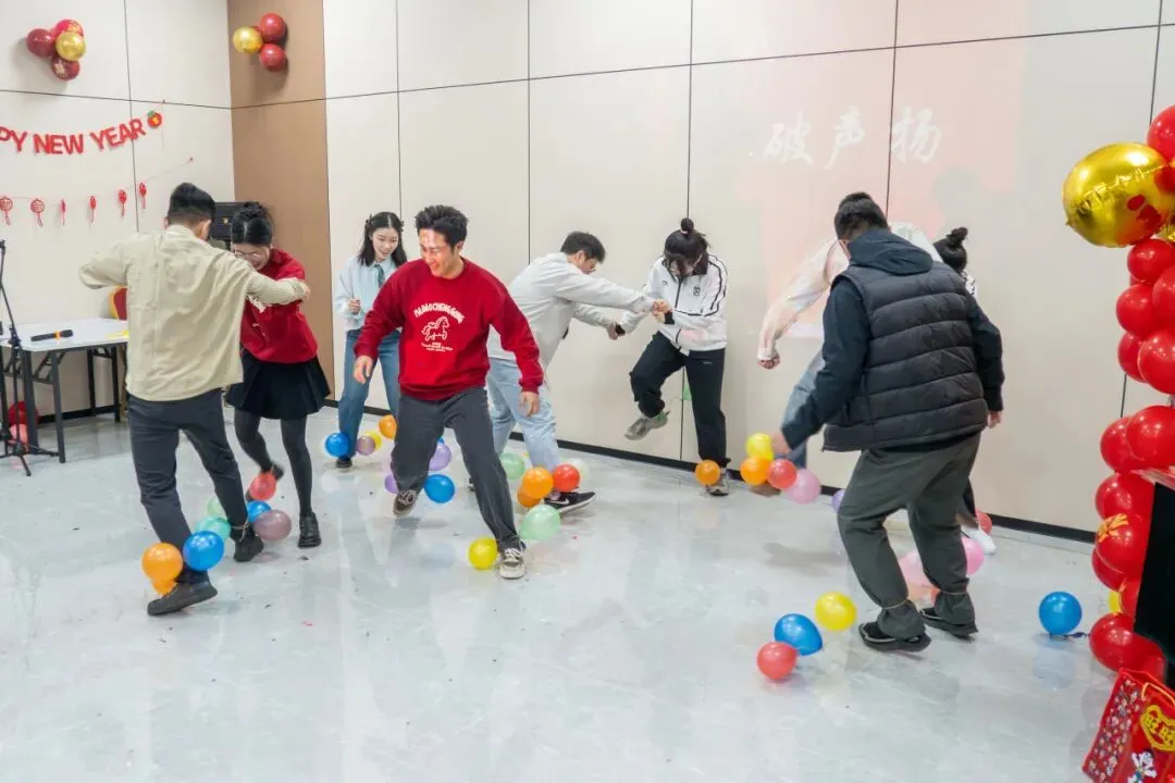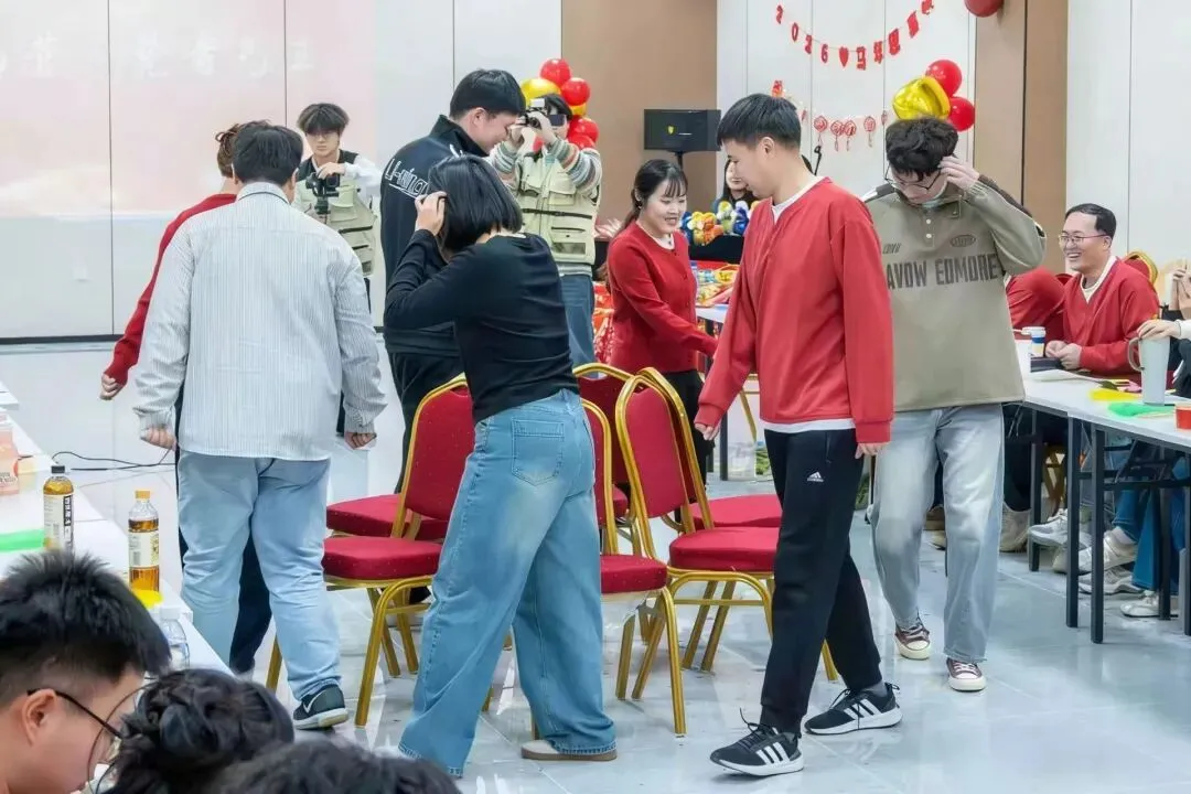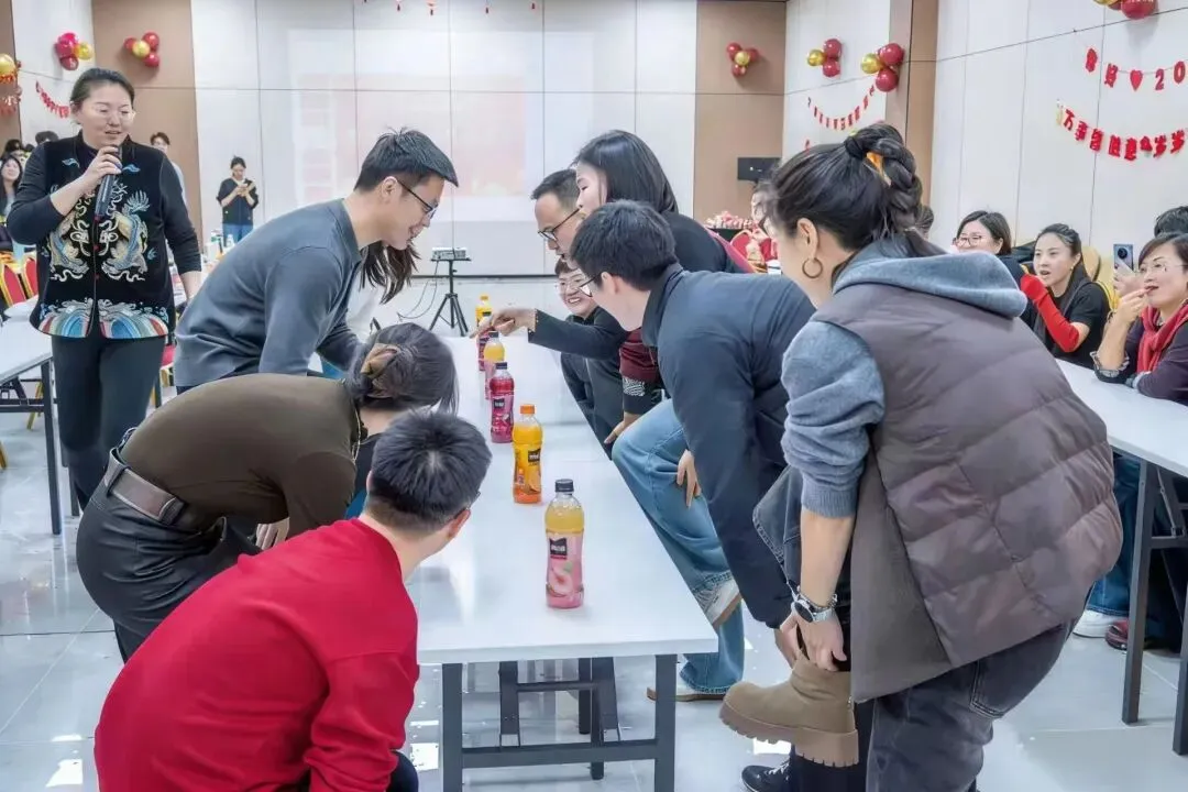 联谊会共设计“步步为营·凳者为王”“节奏狂飙·花落C位”“步步生风·球破声扬”“手手神速·瓶落赢家”四项游戏,辅导员们在欢快的游戏氛围中卸下了平日里的严肃忙碌,暂时告别繁杂琐碎的工作,在轻松愉悦的互动里涤荡了一年积攒的疲惫。这一场场短暂却充满欢笑的小游戏,成为了迎接新年不可或缺的欢乐序曲。