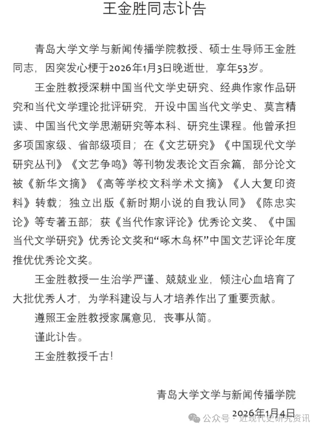>青岛大学讣告!