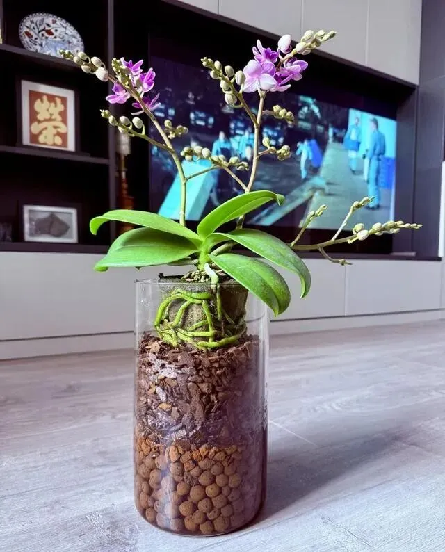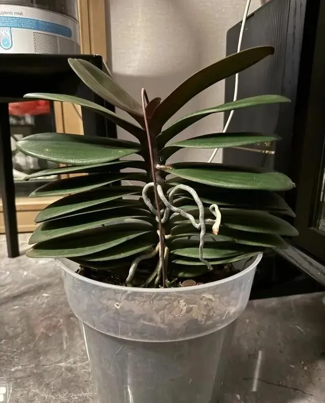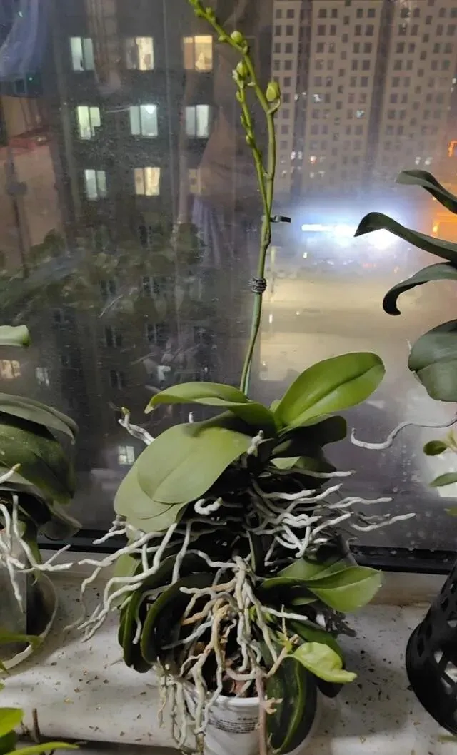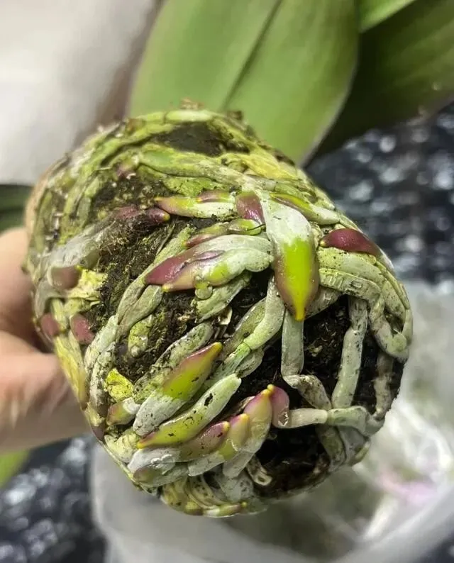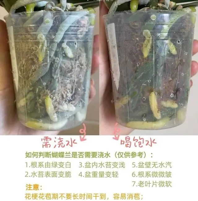蝴蝶兰是气根植物 , 不能用普通营养土 , 会闷死根的。