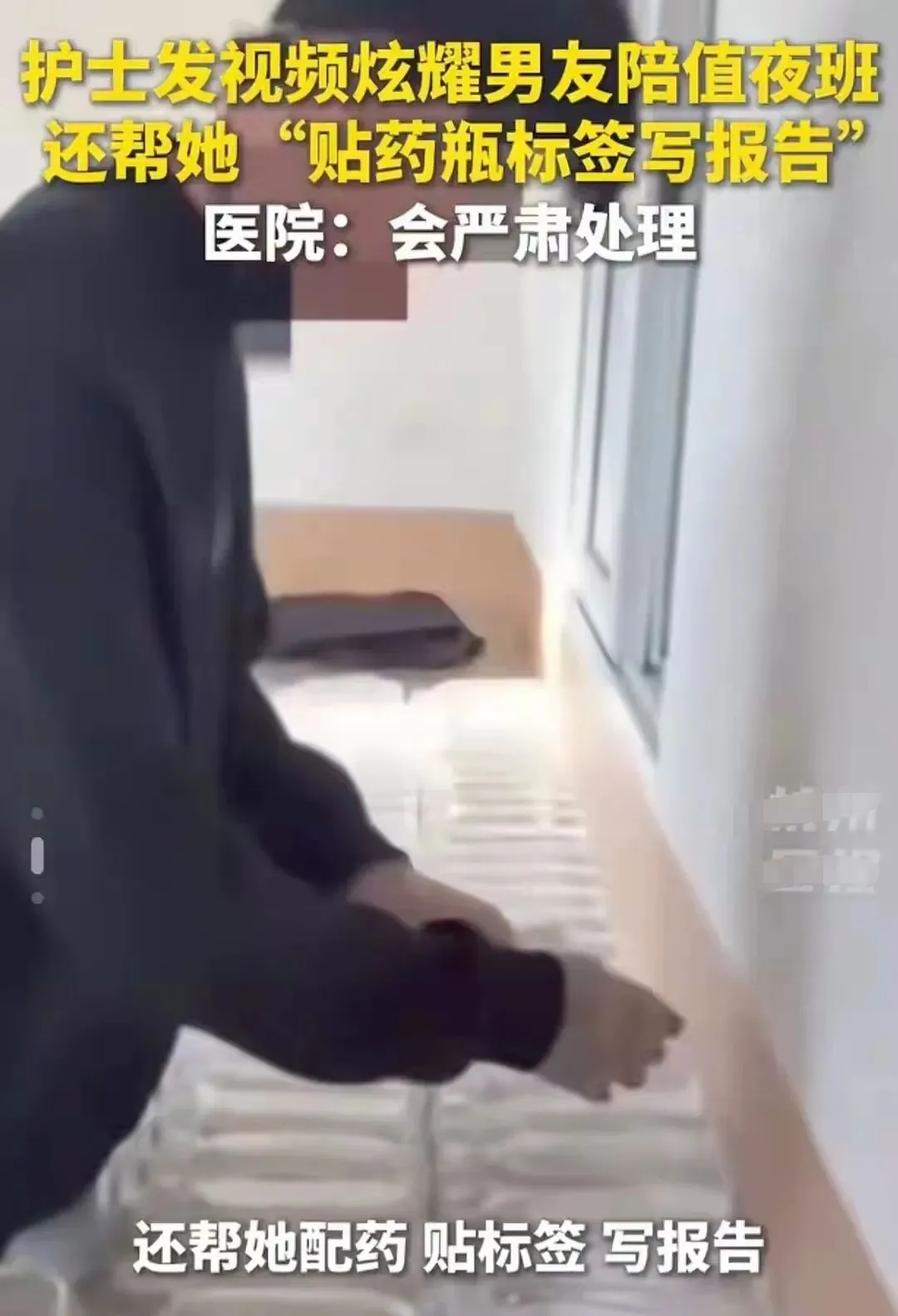 她在上夜班的时候带着男朋友,发视频秀恩爱,秀出来的内容差点把所在医院的病人吓坏,她居然让外行男友帮她配药,贴药瓶标签,还写报告……