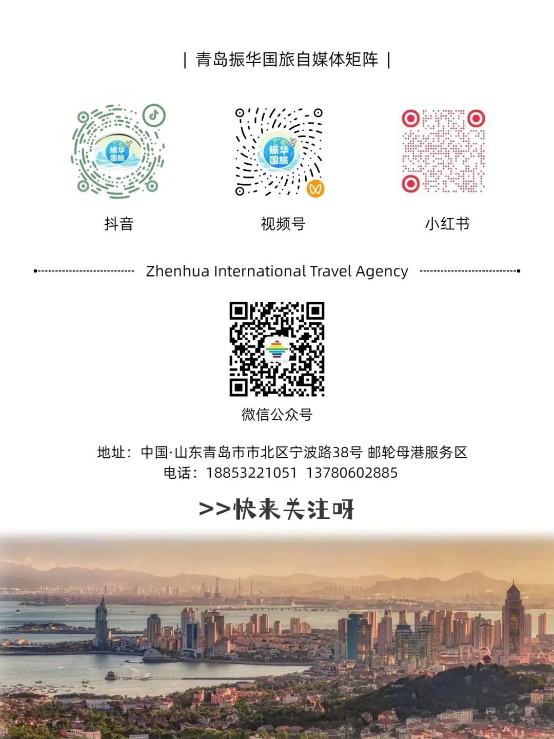 青岛振华国际旅行社有限公司(简称“振华国旅 ”),于2006年成立于美丽的海滨城市一青岛,是经山东省旅游局批准的国内外旅游组团社,3A级旅行社,青岛振华国际旅行社西海岸分公司,成立于2021年,公司专注于青岛及山东省内烟台威海蓬莱、临沂、曲阜地区的旅游接待业务,同时开发国内旅游、出境旅游、国际邮轮、会议考察、公司团建,度假疗养及夏令营、研学等服务。公司有着专业的票务代理团队,与各大航空公司都有着密切的业务往来,爱岗敬业的管理团队,国家认证的优秀导游队伍,团队拥有良好的专业素养和丰富的从业经验。