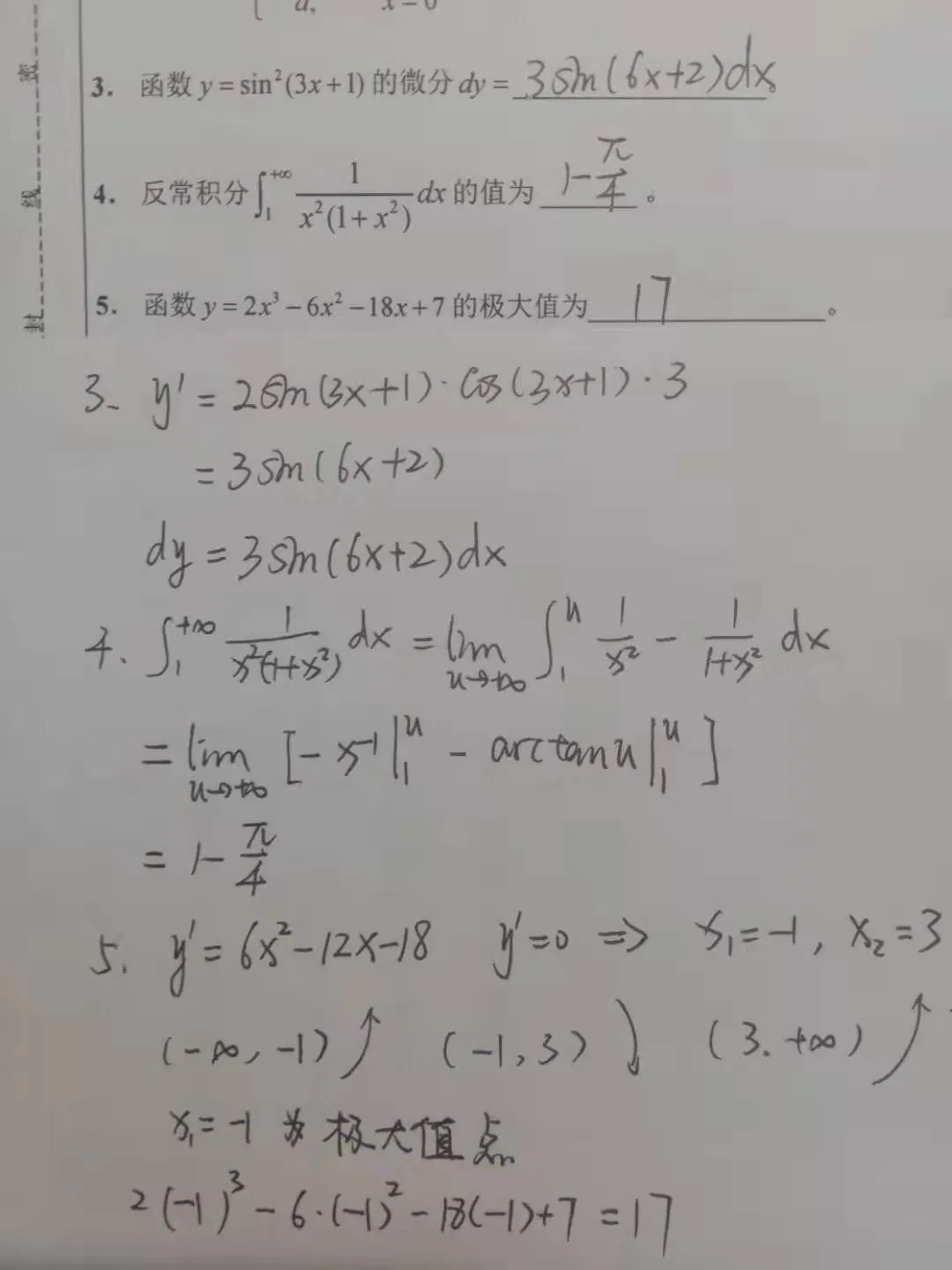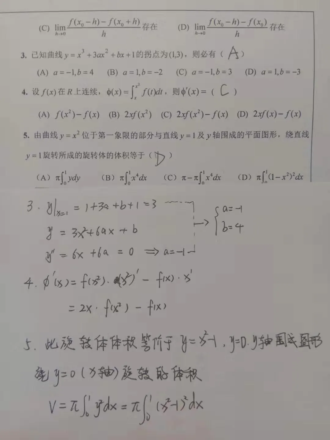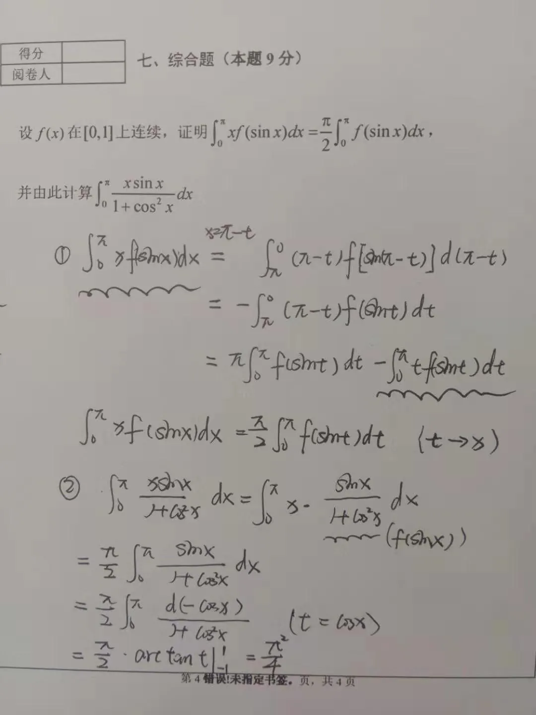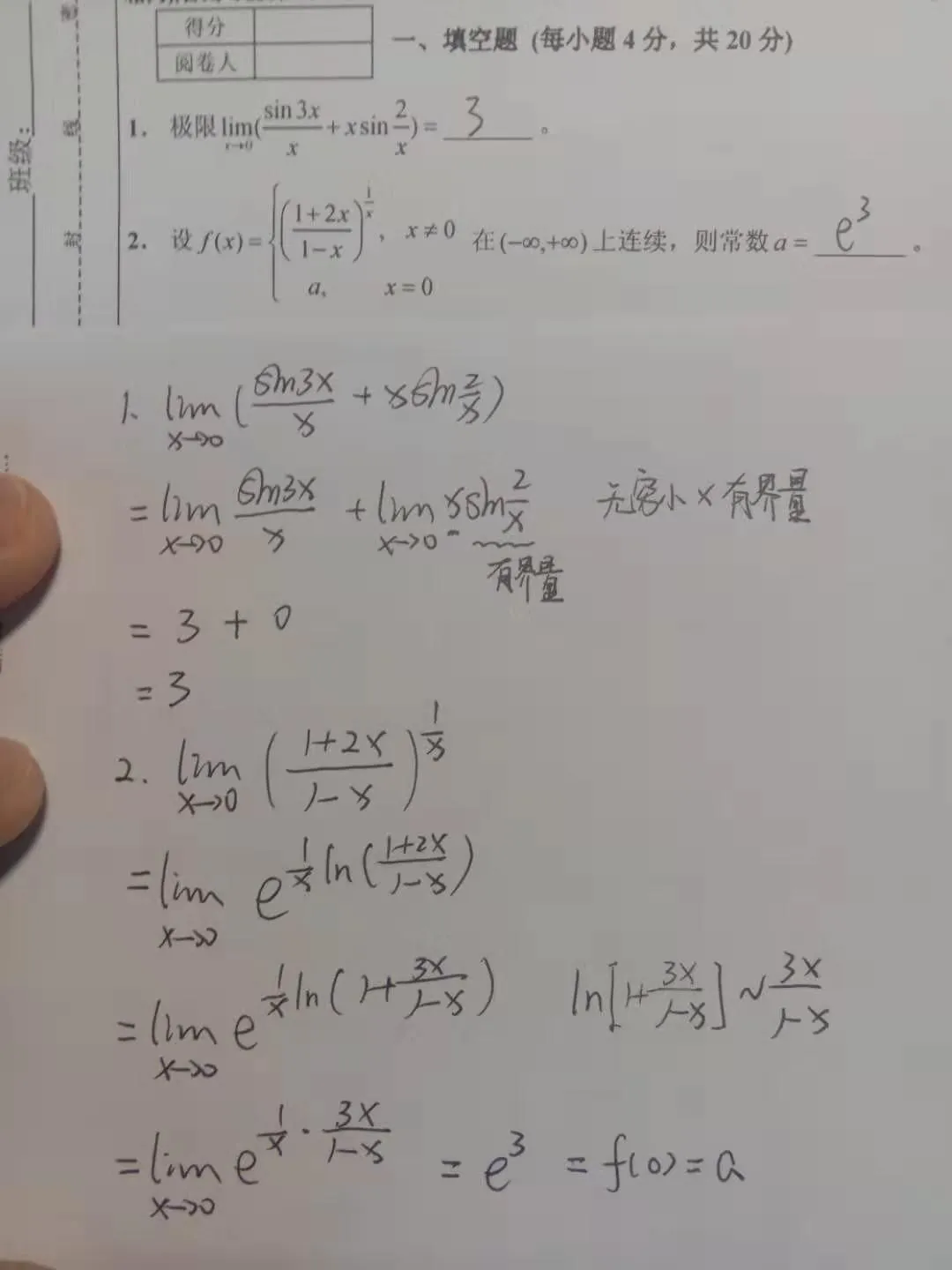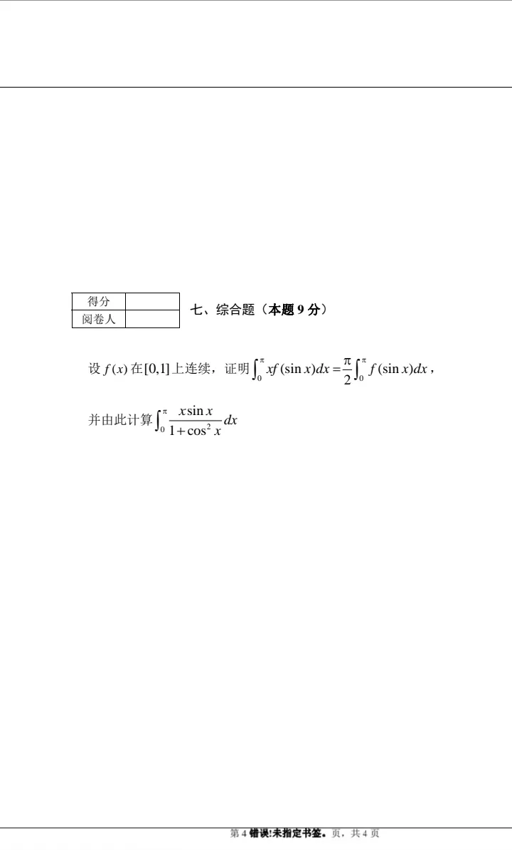 题目来自于微信好友,是青岛大学往年期末真题,高等数学第一学期期末试题,具体哪一年就不说了。