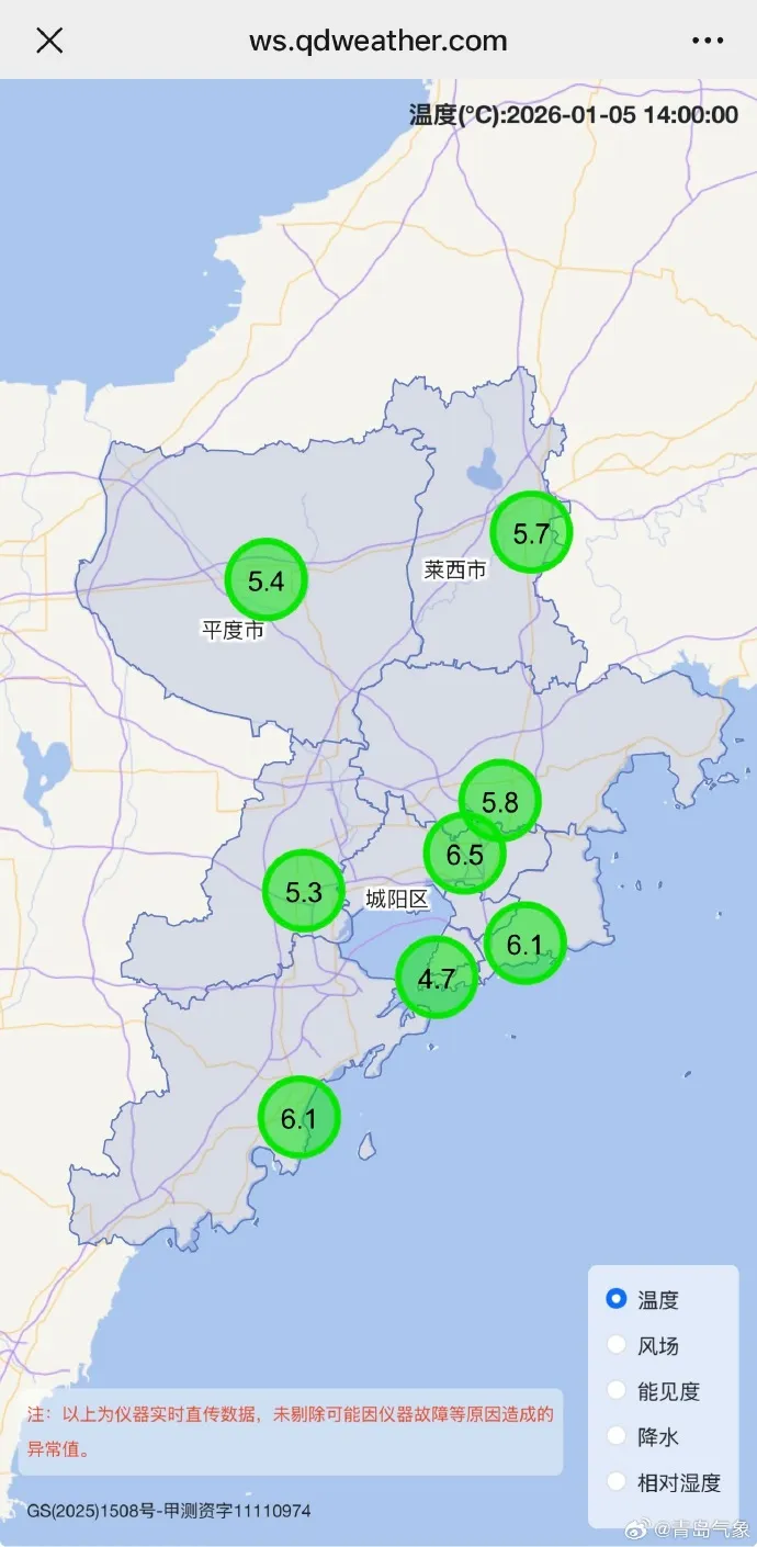 青岛市气象台5日16时发布: