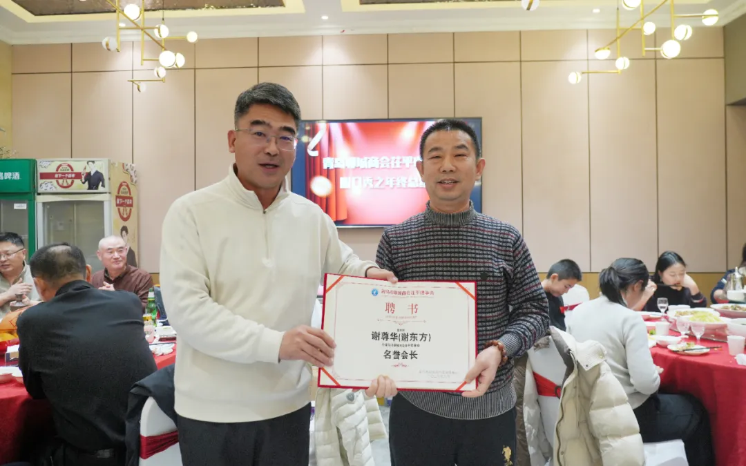 本次活动还特别聘任谢东方先生为茌平理事会名誉会长,以感谢他多年来对理事会的持续帮助与突出贡献。在全体会员的见证下,茌平理事会会长尹立涛为谢东方名誉会长现场颁发了聘任证书。
