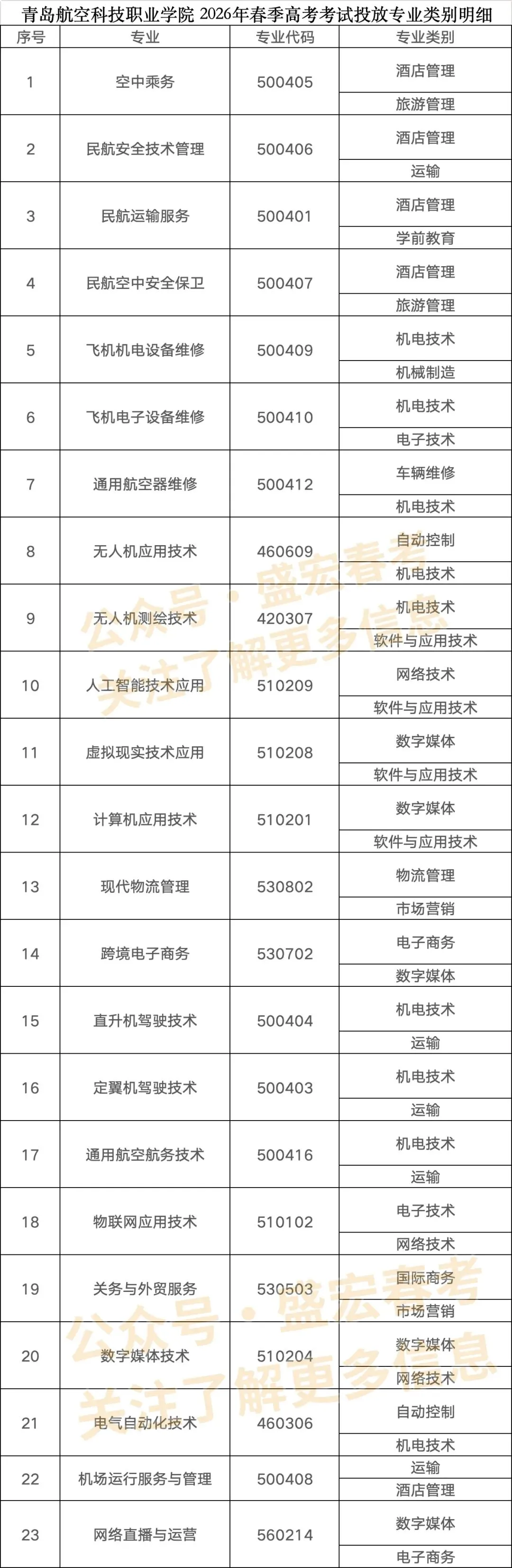 >青岛航空科技职业学院|2026年春考投放专业类别