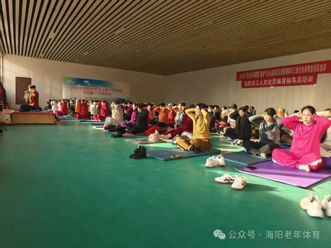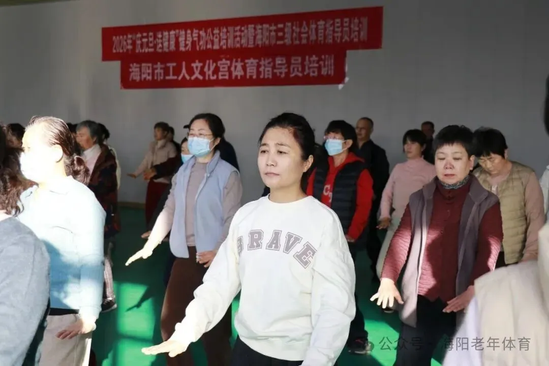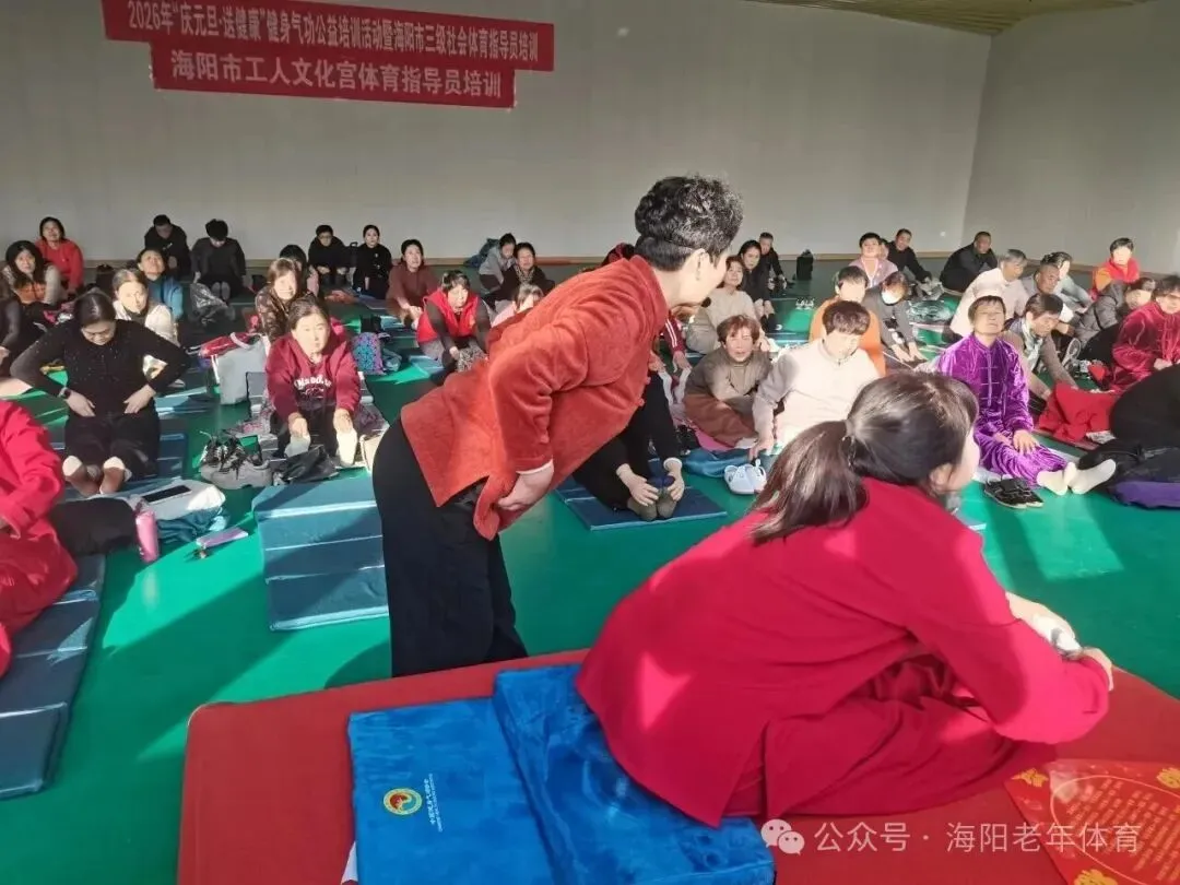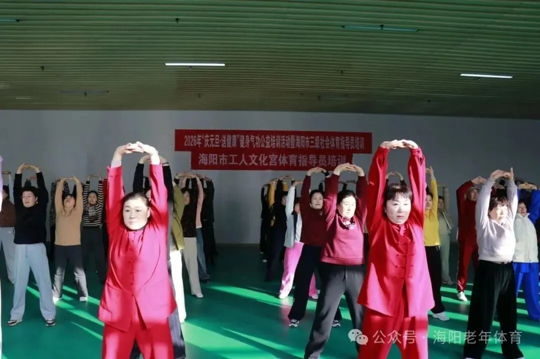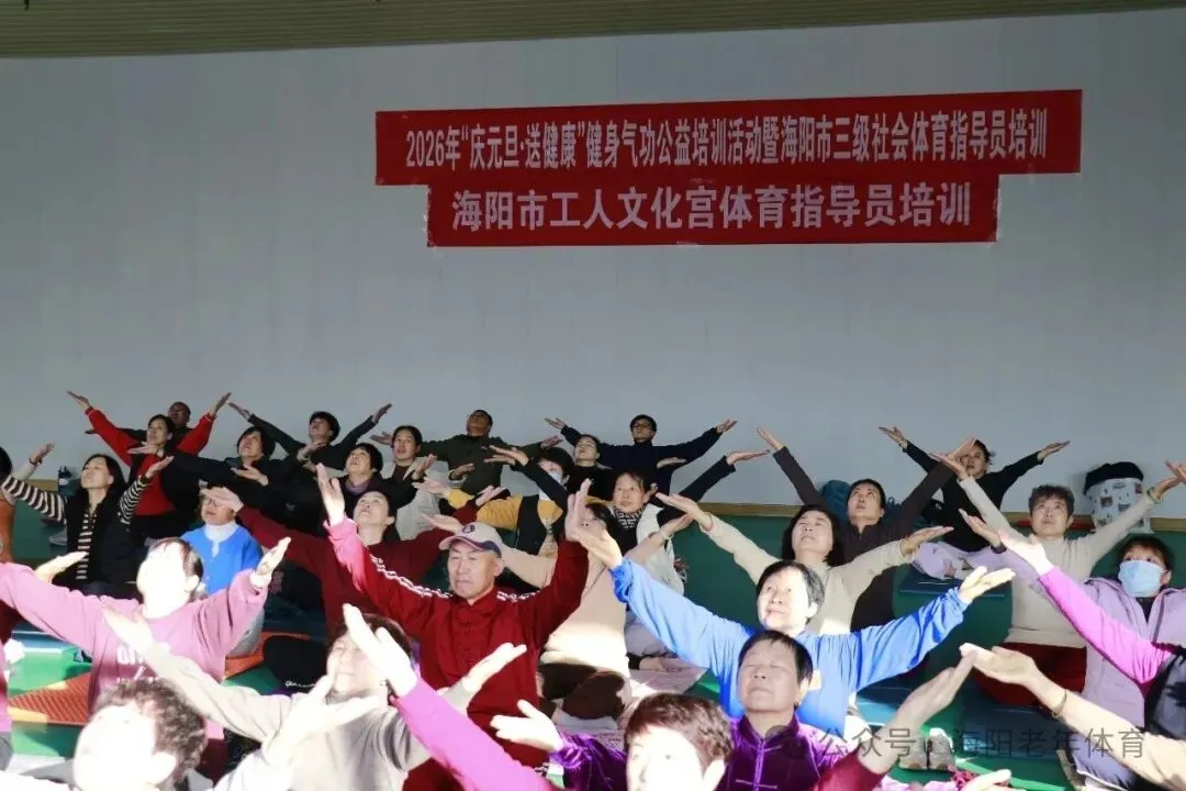 为深入贯彻落实全民健身国家战略,积极推动全民健身与全民健康深度融合,进一步丰富全市干部群众文体生活,由海阳市总工会、海阳市体育运动服务中心、海阳市老年大学、海阳市老年人体育协会联合主办的“气韵启新岁,健康迎新年”健身气功公益培训活动于2025年12月31日在海阳市工人文化宫举行开班仪式。本次活动以公益教学的形式,吸引了全市众多机关事业单位及城市社区120多名健身骨干参与,以健康的方式和昂扬的姿态开启新年新征程。活动在全体参训人员集体展演健身气功八段锦中拉开序幕。伴随着悠扬舒缓的音乐,参训者们动作整齐、呼吸协调,将八段锦“松紧结合、动静相兼”的功法精髓展现得淋漓尽致,彰显了健身气功在我市深厚的群众基础。本次培训聚焦国家体育总局推广的健身气功•十二段锦, 从功法源流、功理要义、动作规范、呼吸协同到习练禁忌,进行了系统深入的拆解讲解与精准示范。十二段锦融合了形体活动、呼吸吐纳和心理调节,动作舒缓优美,内涵深厚,适合各年龄段人群习练,对提升身体素质、缓解压力、颐养身心具有显著益处。培训教练由海阳市老年体协副主席、国家级社会体育指导员、国家一级健身气功教练员李淑品老师担任。培训过程中,李老师从理论知识讲解、动作分解示范,到呼吸吐纳技巧、功法养生原理,均进行了细致入微的指导。参训学员们热情高涨,专注投入,潜心揣摩,紧紧跟随老师的节奏,一招一式力求形神兼备,意气相随,浓厚有序的学习氛围,充分展现了广大干部群众孜孜不倦、精益求精的求学精神和积极向上的健康风貌。 在辞旧迎新之际举办此次公益培训,旨在引导广大干部群众树立主动健康意识,掌握科学健身方法,培养健康生活方式。活动不仅是一次技能培训,更是一次全民健身理念的深入推广,更凝聚了广大中老年人的向心力与凝聚力,为健康海阳注入了健康活力的气息。参与培训的学员们纷纷表示,这次活动内容非常实用,既能学习到正宗的健身气功技法,又在集体锻炼中感受到了浓厚的节日氛围和团队凝聚力。大家一致认为,以这样一种健康、充满活力的方式告别旧岁、迎接新年,意义非凡,收获满满。他们将把所学带回各自单位和所在社区,积极传播,带动身边更多人加入到全民健身的行列中来。