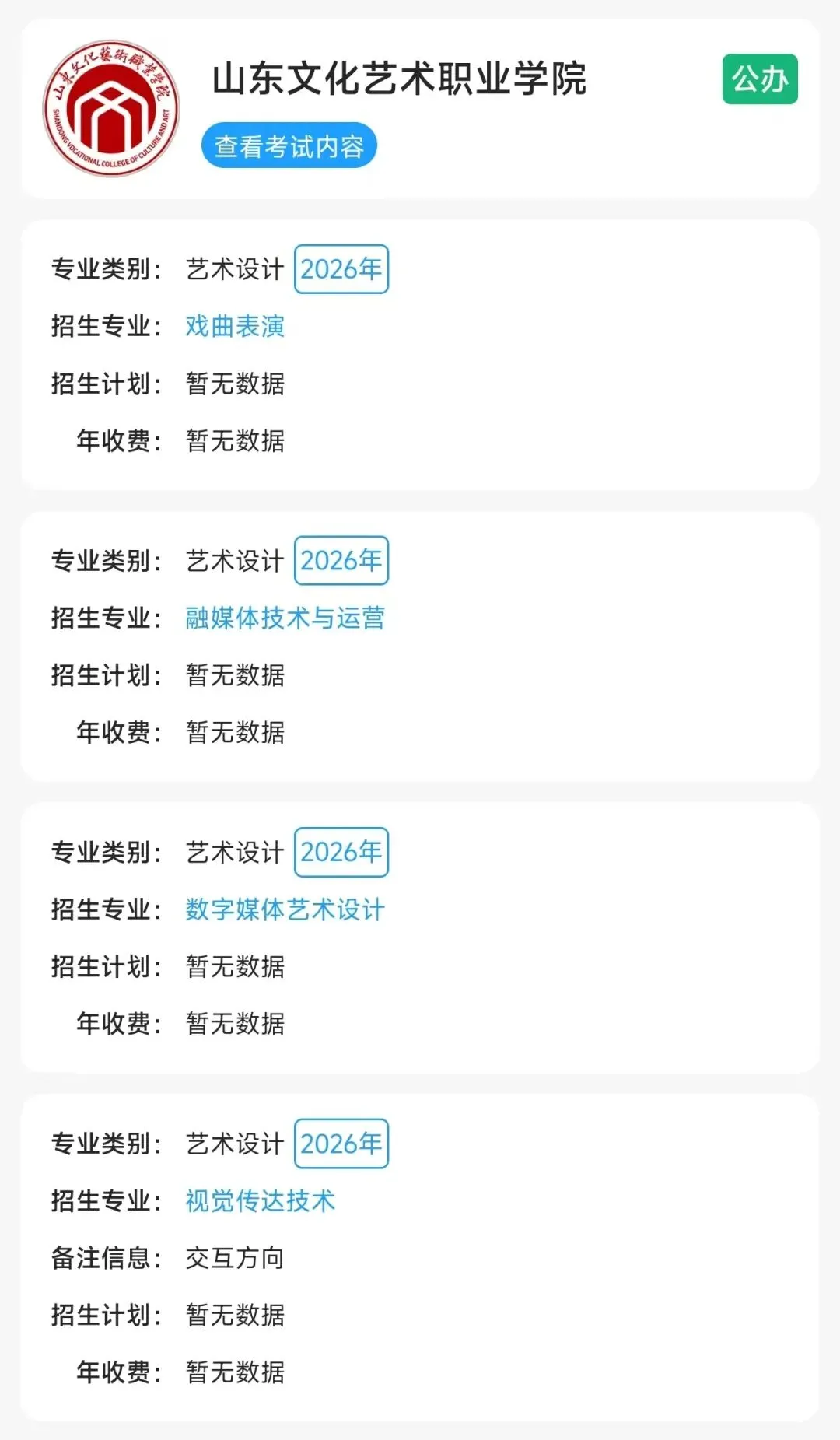 山东文化产业职业学院招生专业