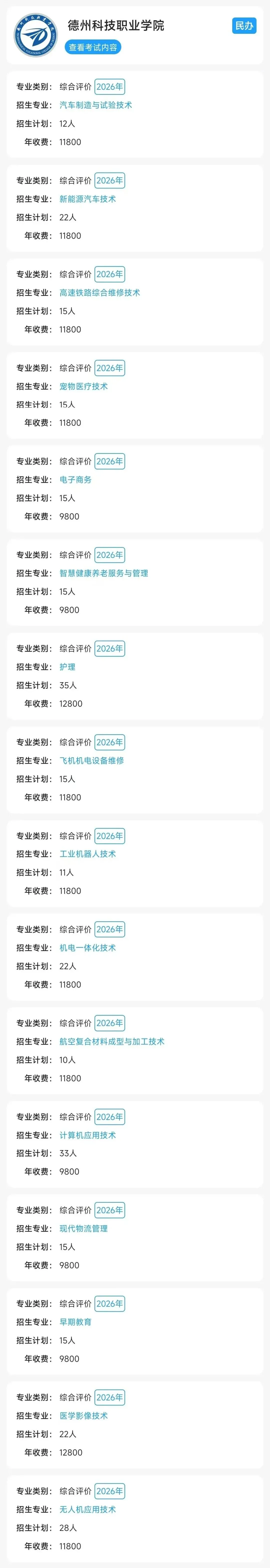 德州科技职业学院招生计划